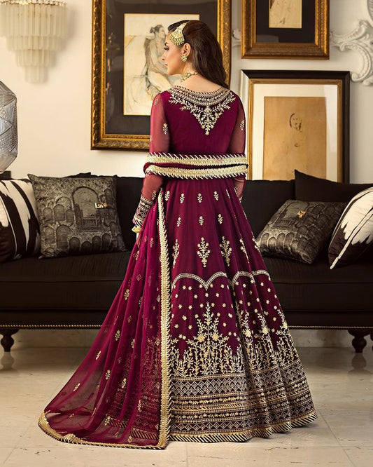 AJKK-28 EMBROIDERED CHIFFON 3 PCS PURPLE SUIT-SET