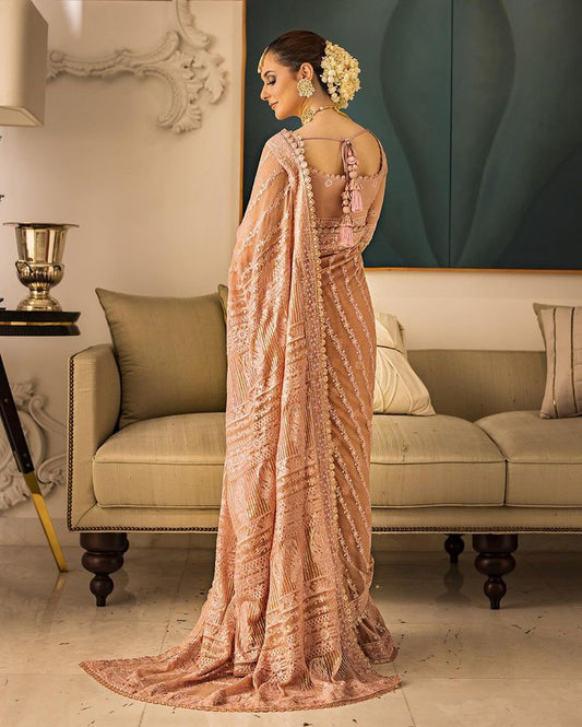 AJKK-30 EMBROIDERED CHIFFON 3 PCS BROWN SUIT-SET