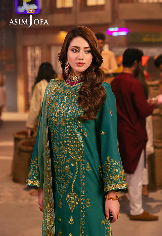 AJKK-27 EMBROIDERED TWISTED SILK 3 PCS GREEN SUIT-SET