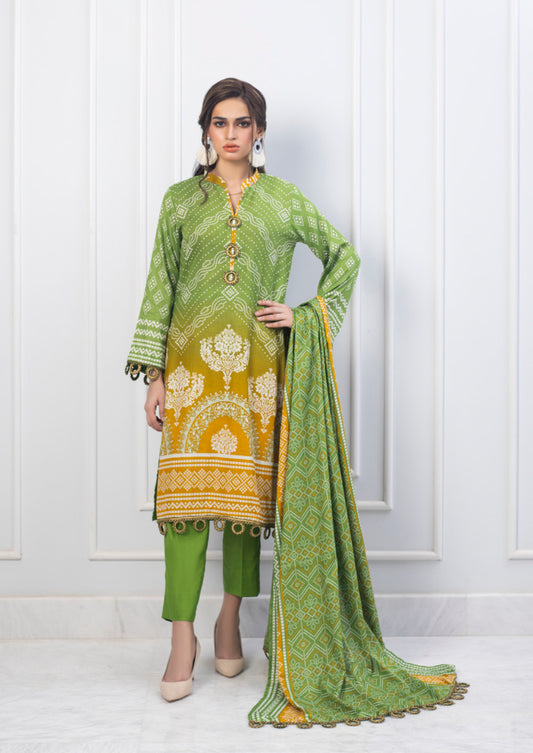 Erum Misha Printed Lawn Collection Green Suit-Set