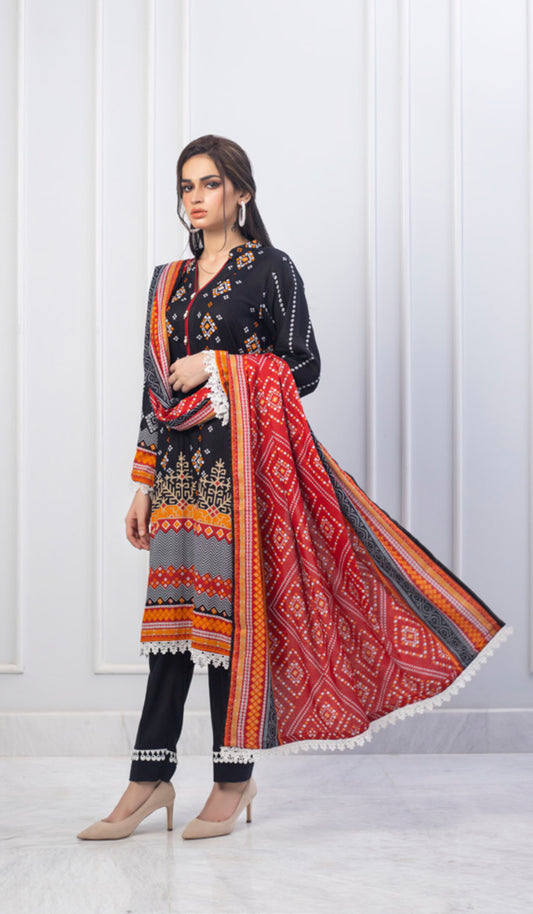 Erum Misha Printed Lawn Collection Black Suit-Set