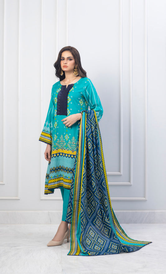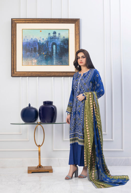 Erum Misha Printed Lawn Collection Blue Suit-Set