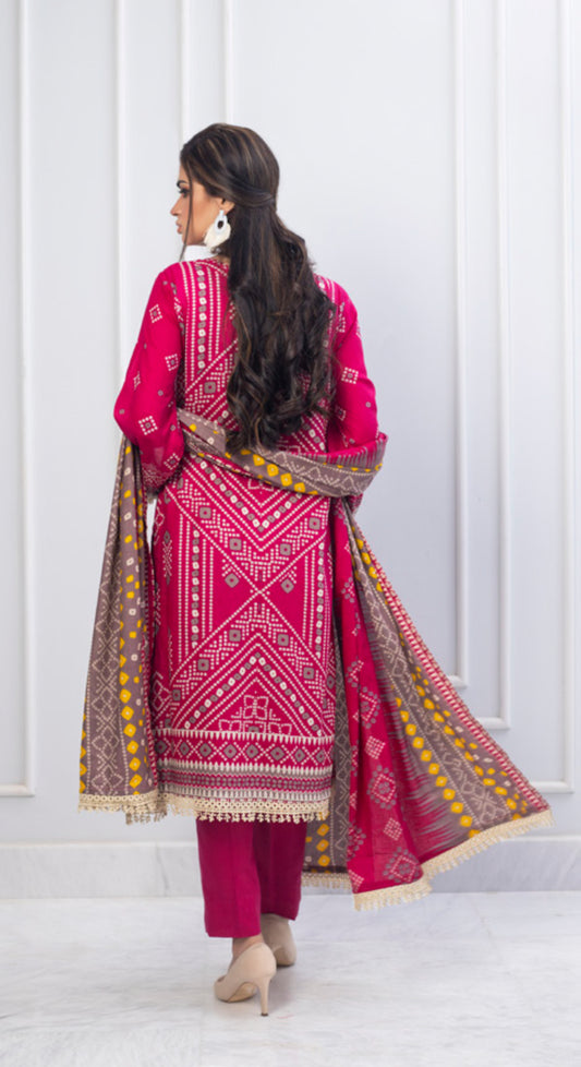 Erum Misha Printed Lawn Collection Pink Suit-Set