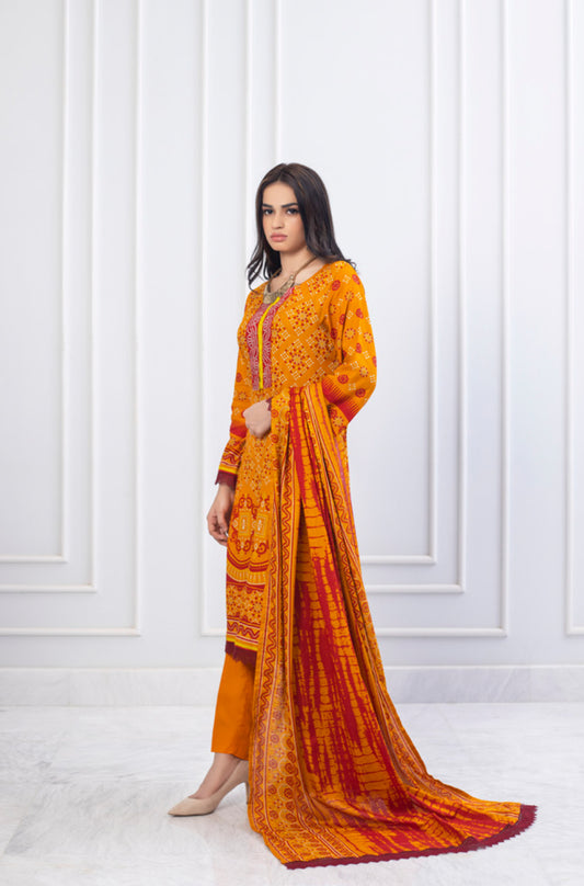 Erum Misha Printed Lawn Collection Orange Suit-Set