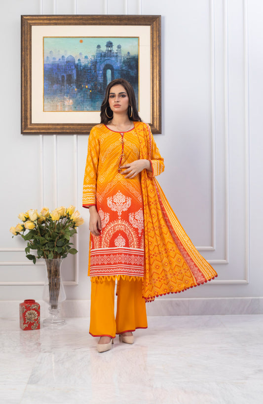 Erum Misha Printed Lawn Collection Yellow Suit-Set