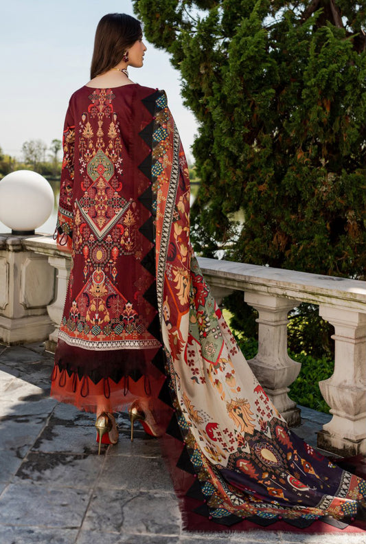 Jade By Queen's Court Embroidered Lawn Collection - Maroon Suit Set