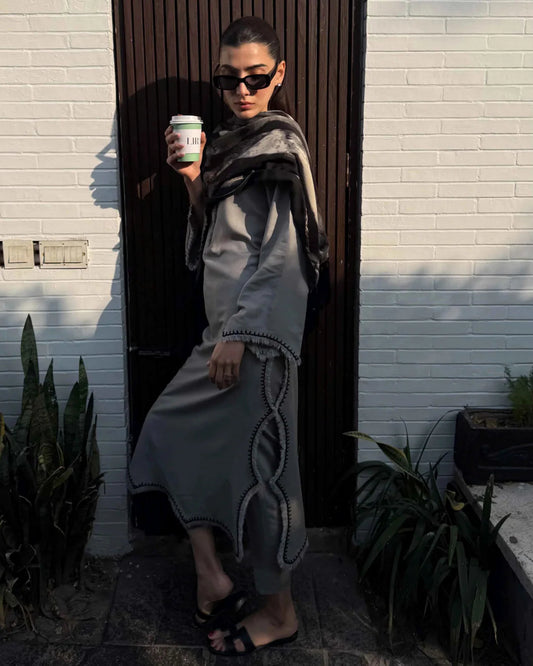 Taupe Embroided Thread Set | LIRA