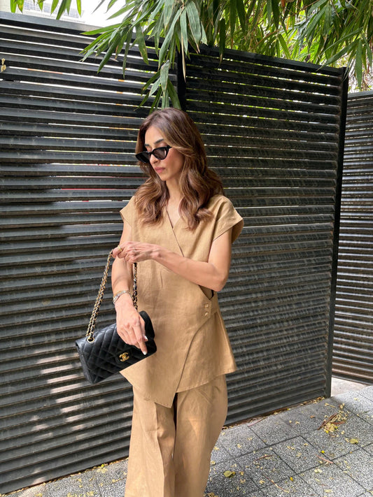 Sak Atelier Brown Linen Vest Set