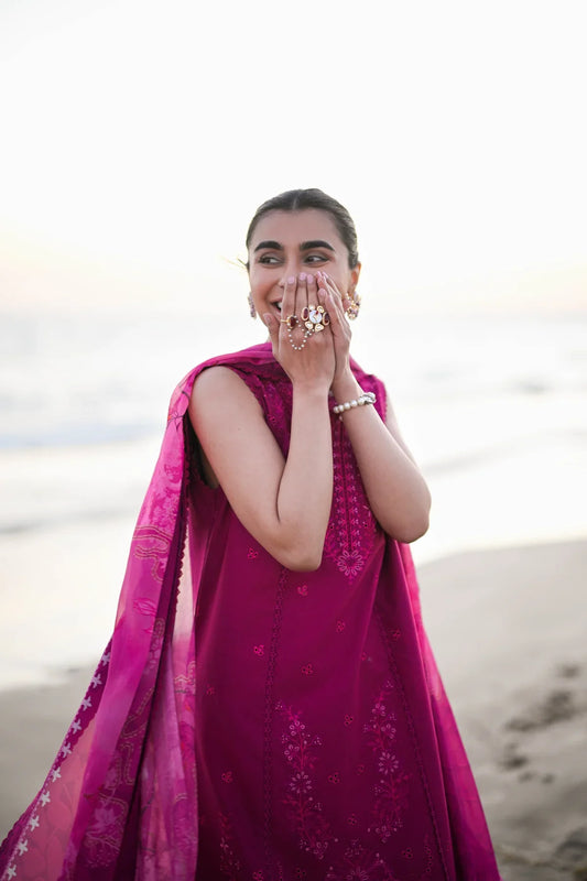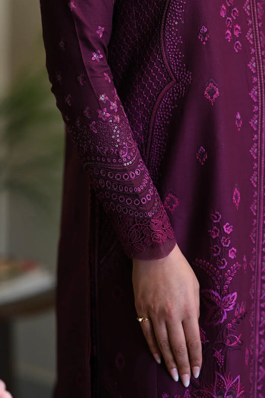 ZAIB MAROON LUXURY EMBROIDERED LAWN SET 2025 (NEL-25606)
