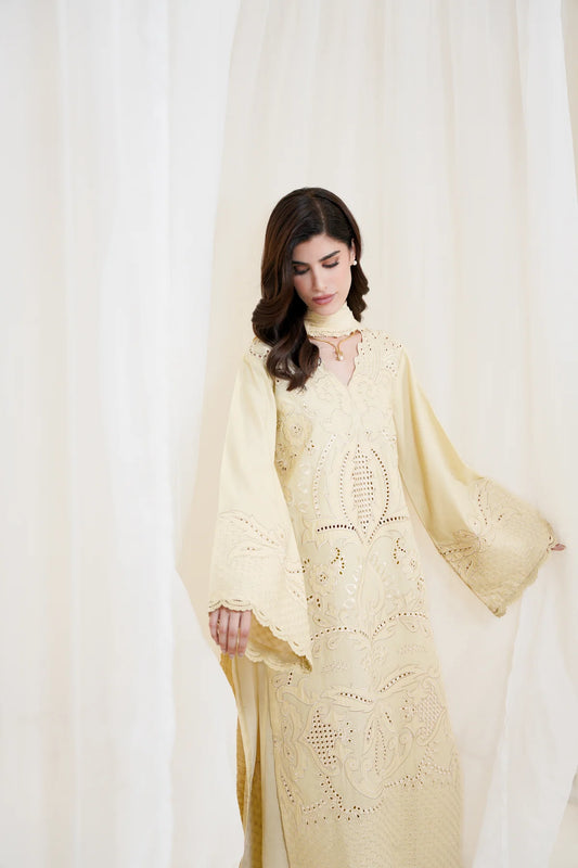 Zaib SS Eid Pret '25- BUTTER YELLOW LUXURY EMBROIDERED 3PCS SET NPA3-25420