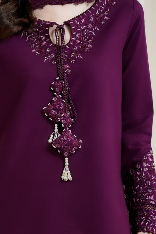 Zaib SS Eid Pret '25- BURGUNDY PLUM FARSHI LUXURY EMBROIDERED 3PCS SET NPA3-25425