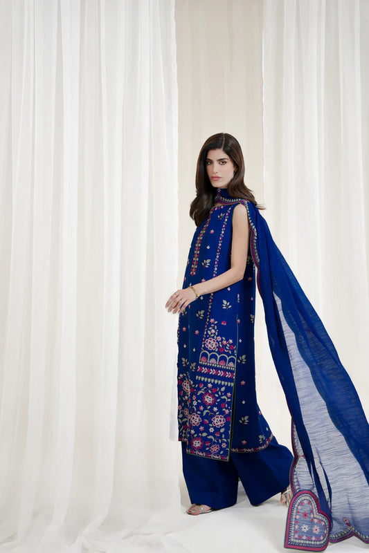 Zaib SS Eid Pret '25- ROYAL BLUE LUXURY EMBROIDERED 3PCS SET NPA3-25424