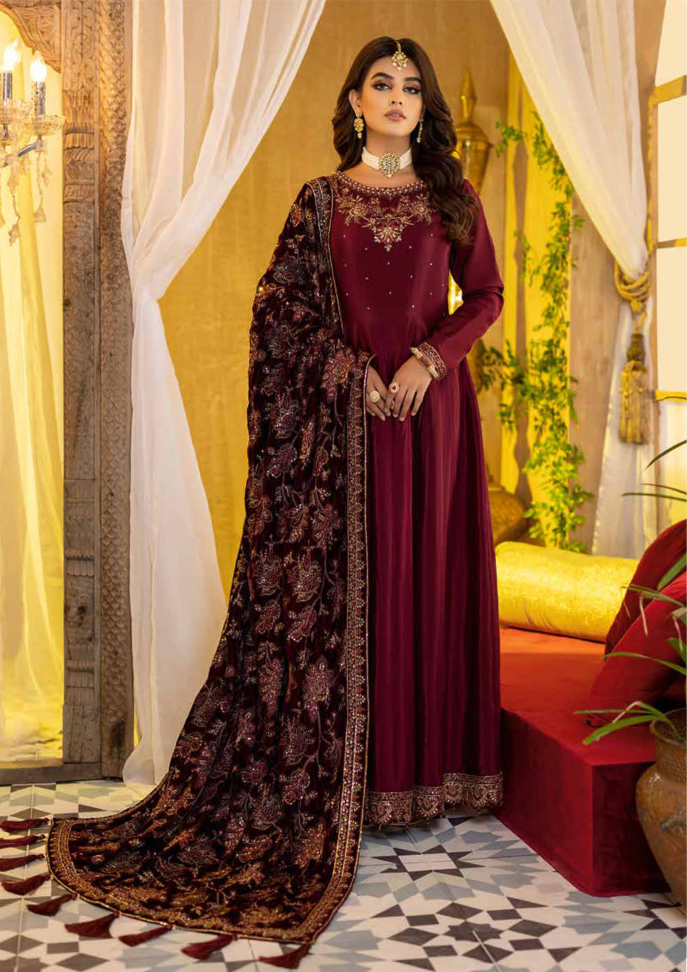 Adan's Libas Embroidered Velvet Collection Red Suit-Set