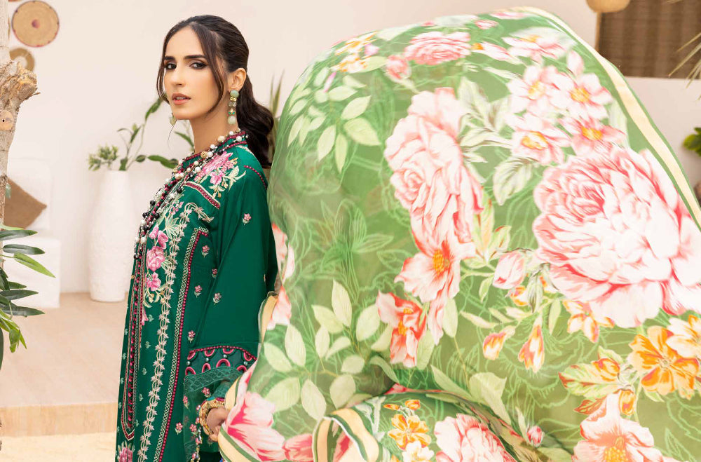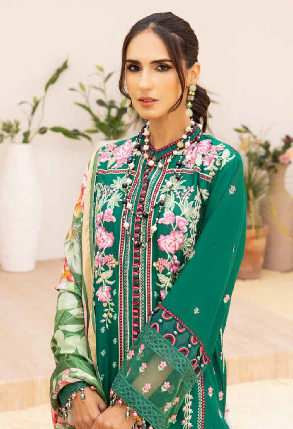 Adan's Libas Muzayyan Unstitched Lawn Collection 2023 – Dark Green Suit Set