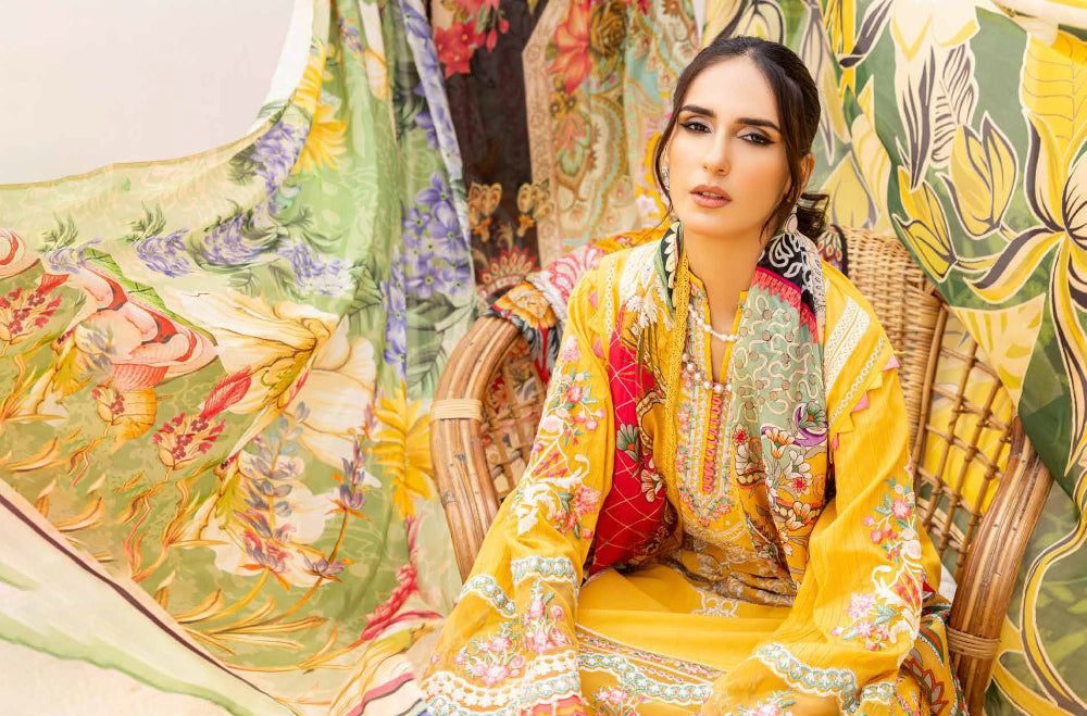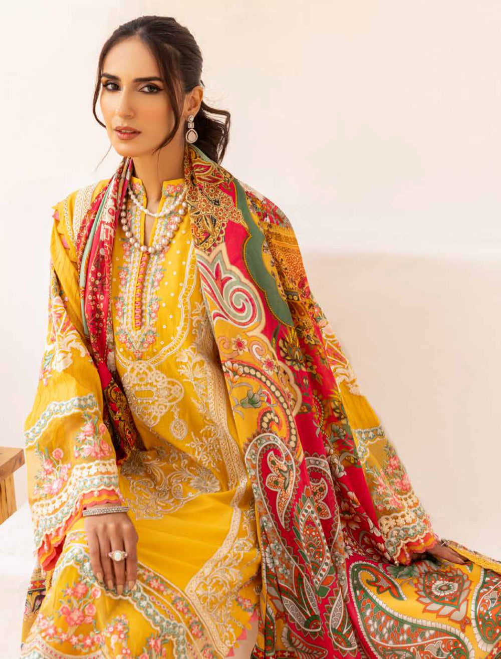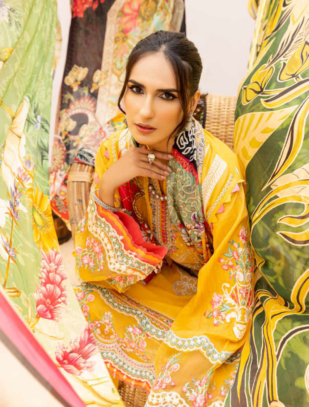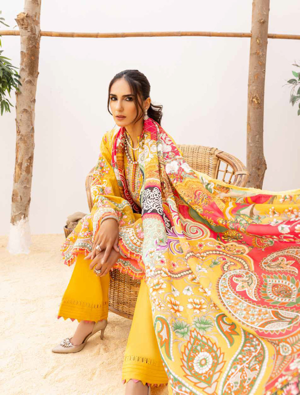Adan's Libas Muzayyan Unstitched Lawn Collection 2023 – Yellow Suit Set