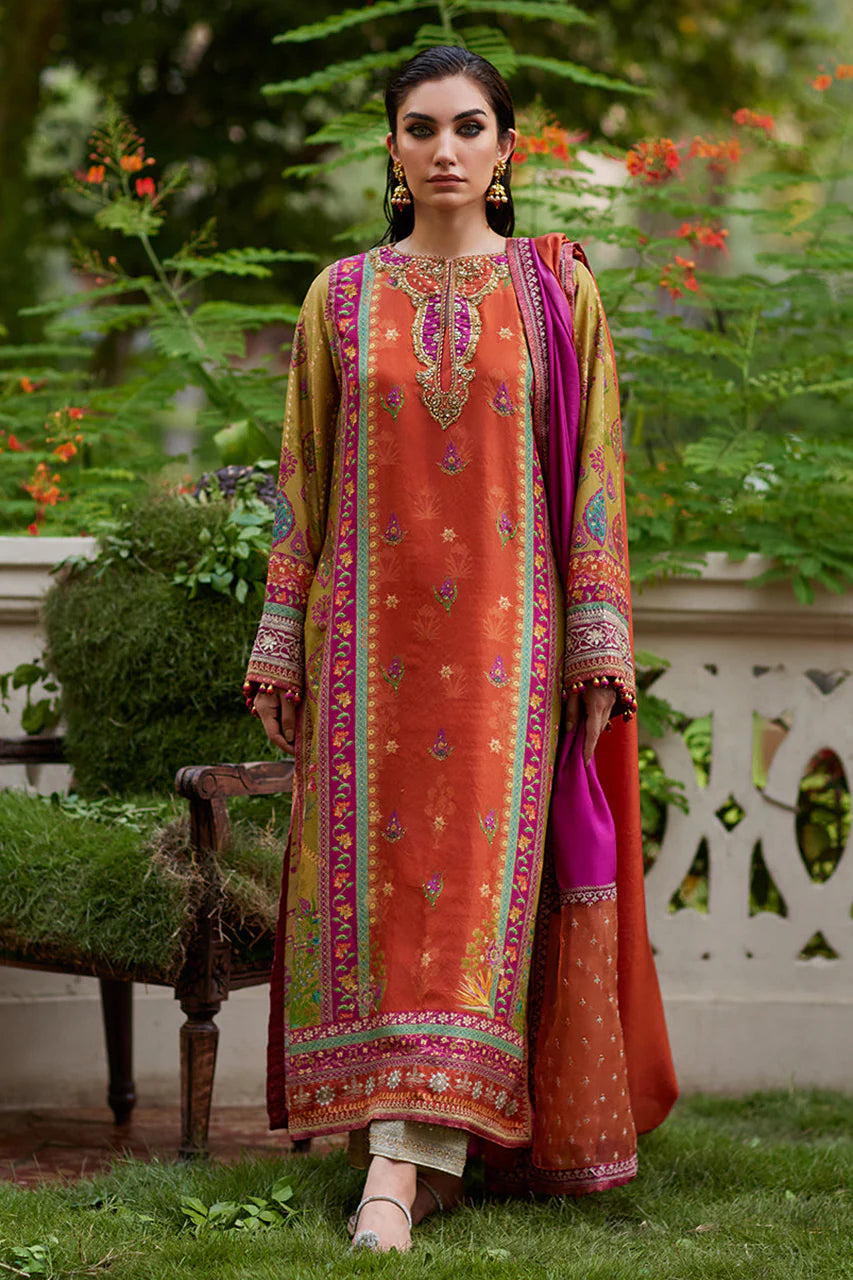 This pure raw silk shirt has a canvas of olive green and burnt orange artfully illustrated with floral and botanical motifs. Adorned with delicate gold embroidery on the neckline, sleeves and daaman this kurta is a sure shot show stopper.