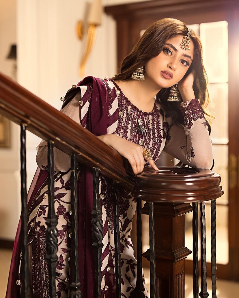• 1 meter embroidered sleeves with border on chiffon