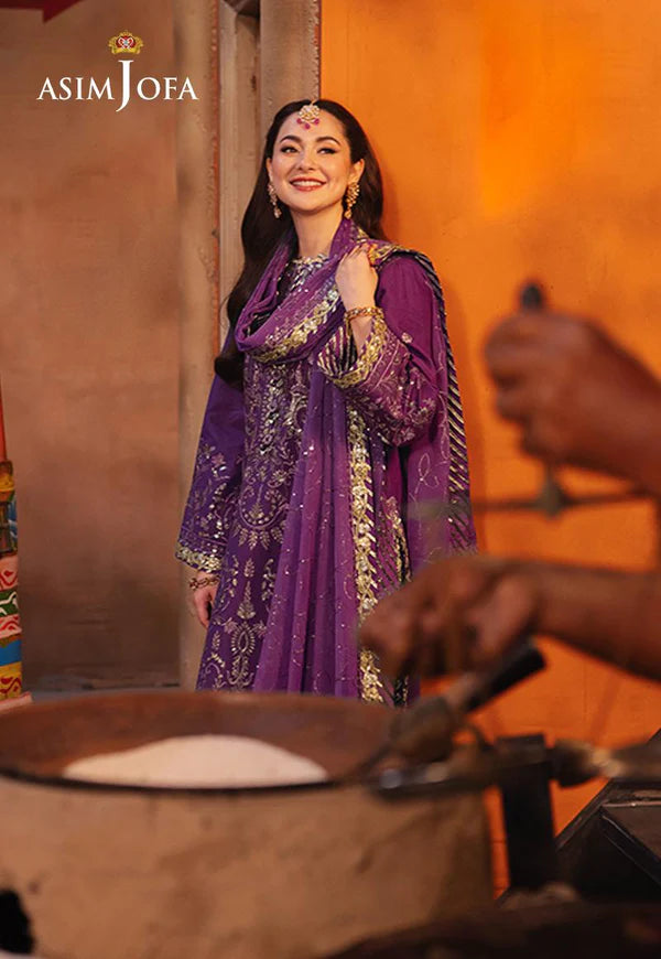 AJKK-07 EMBROIDERED TWISTED SILK 3 PCS PURPLE SUIT-SET