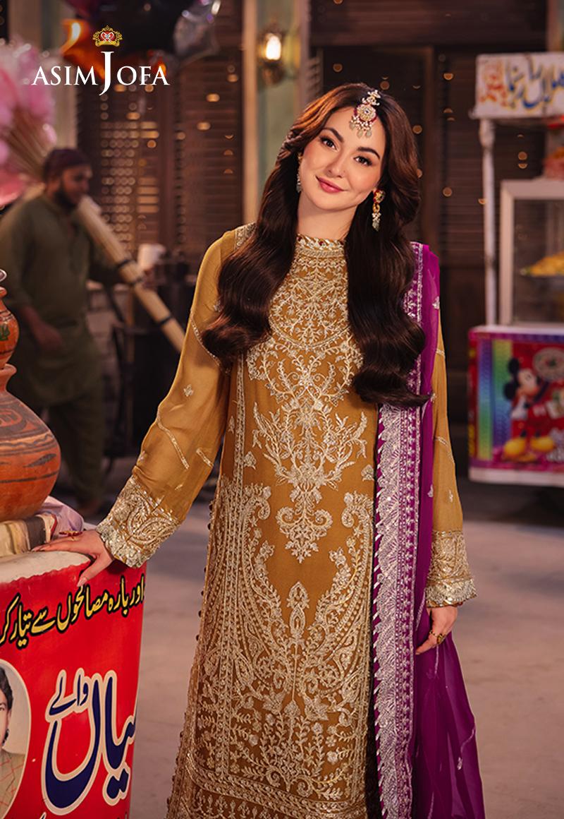 AJKK-12 EMBROIDERED CHIFFON 3 PCS GOLD SUIT-SET