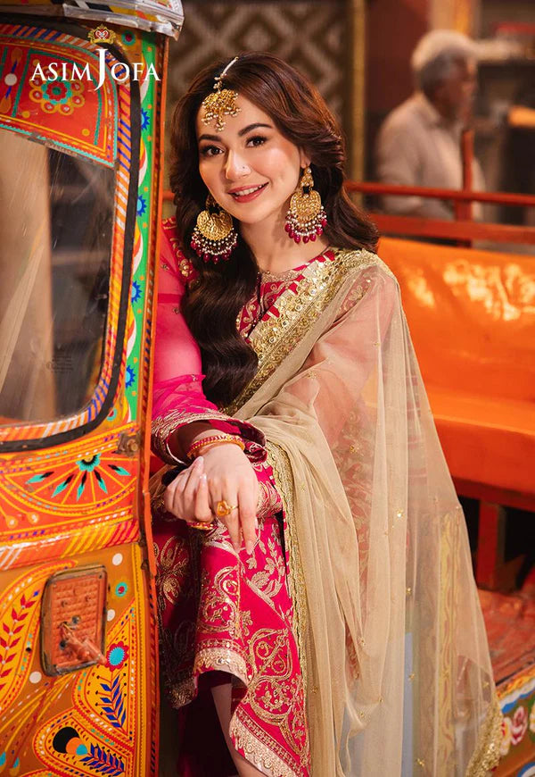 AJKK-14 EMBROIDERED NET 3 PCS PINK SUIT-SET