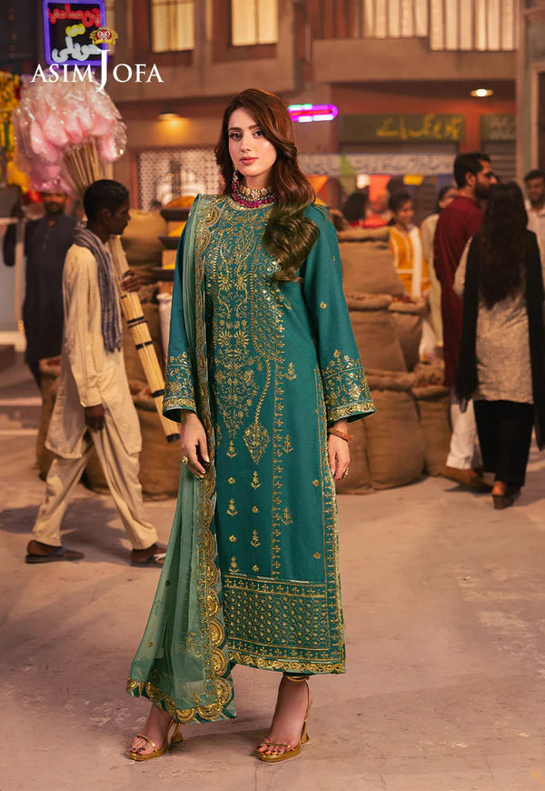 Sold outAJKK-27 EMBROIDERED TWISTED SILK 3 PCS GREEN SUIT-SET