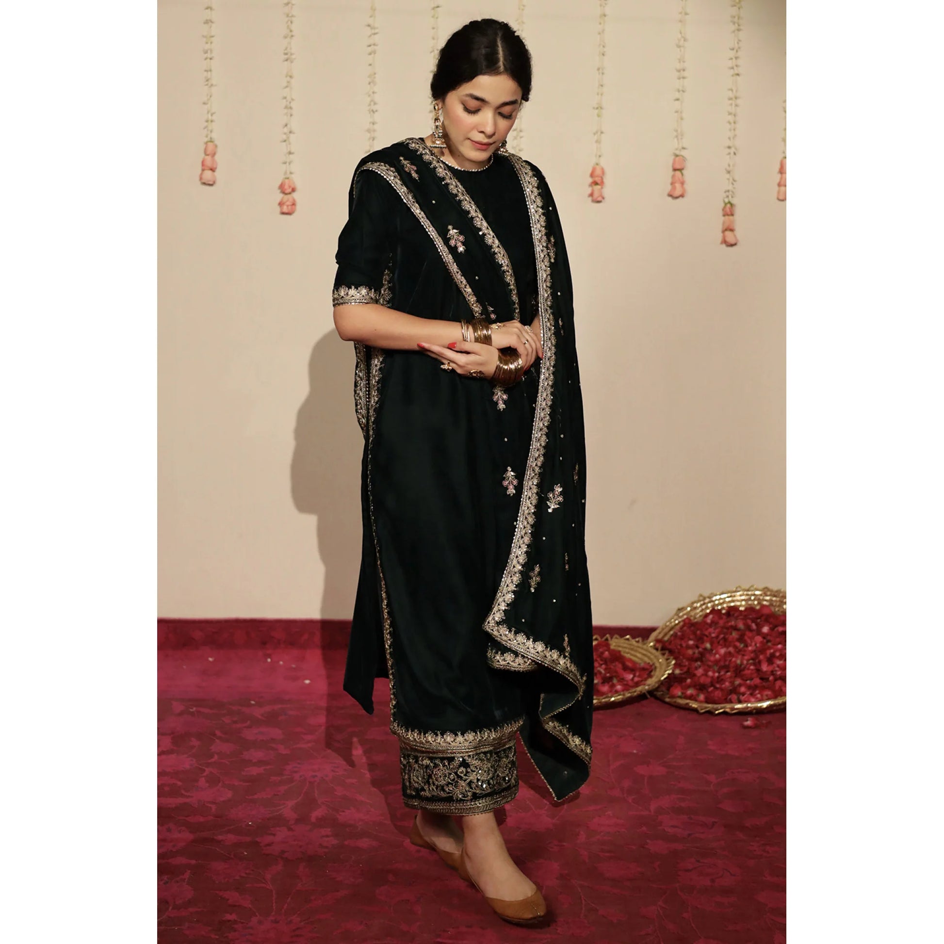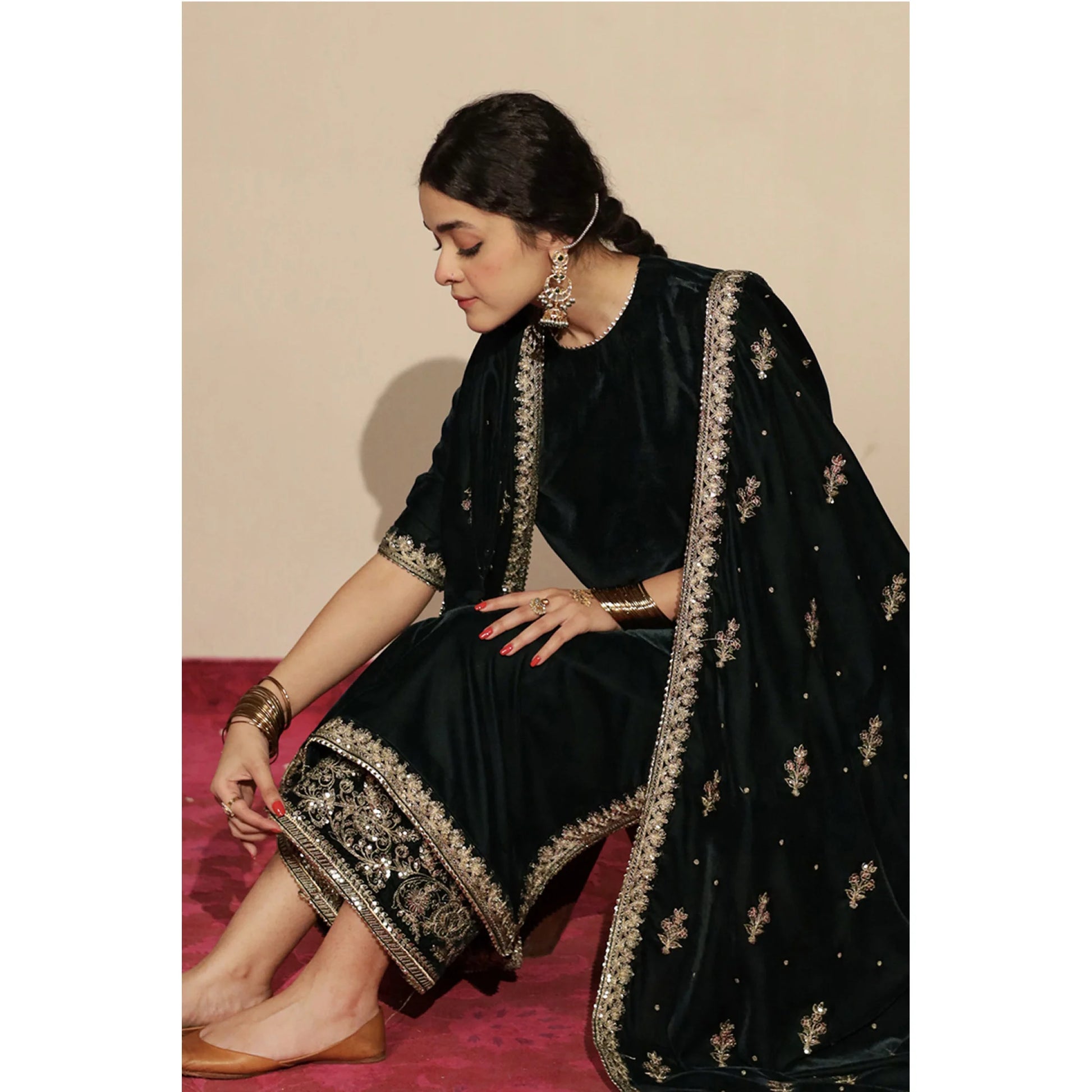Material: Velvet. 2-Pc (Straight Kameez & Culottes)