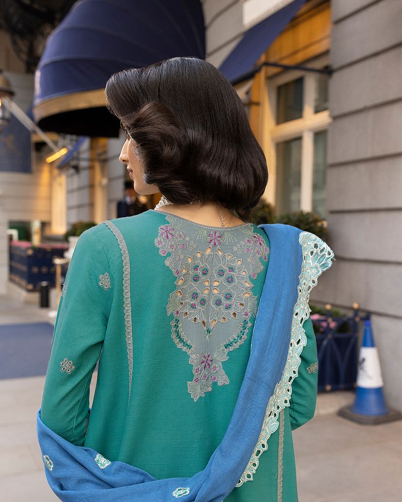 Discover the epitome of grace and sophistication with our "Camden Elegance" ensemble. The chikan embroidered khaddar shirt, adorned with intricate patterns, exudes timeless charm and understated elegance. The sequin embroidered neckline adds a touch of glamour, capturing the spotlight effortlessly. Paired with an embroidered khaddar shawl featuring delicate crochet lace finishing’s, this ensemble embodies classic beauty with a contemporary twist.