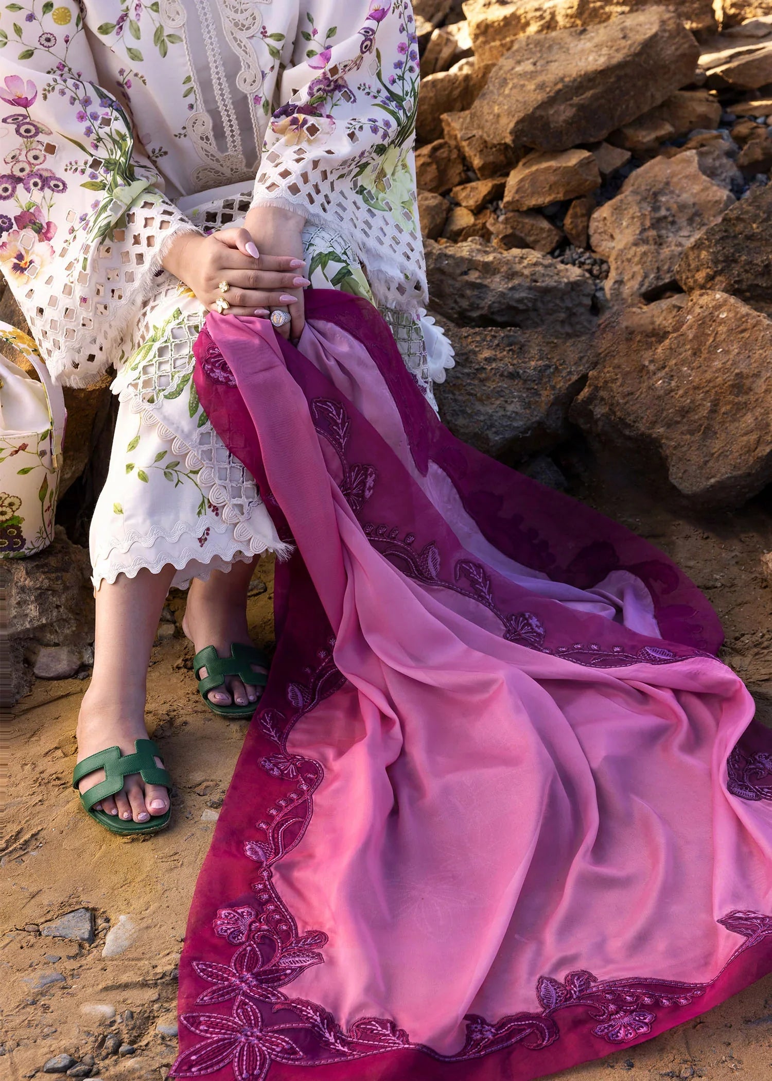 • 2.5 METERS OMBRÉ SILK DUPATTA WITH PRE HAND-APPLIQUED EMBROIDERED BORDER ON LENGTHS