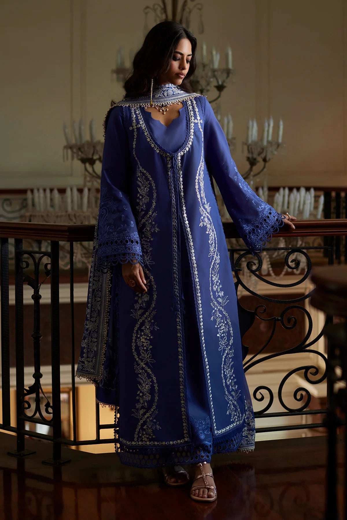 Introducing our stunning deep periwinkle dress, designed with a front-open style shirt that exudes elegance. The dress features an inner shirt adorned with beautiful embroidery and intricate cutwork details, complemented by delicate lace accents. Paired with an embroidered chiffon dupatta and stylish culottes pants, this outfit is perfect for any special occasion. Embrace a blend of sophistication and modern fashion with this exquisite ensemble!