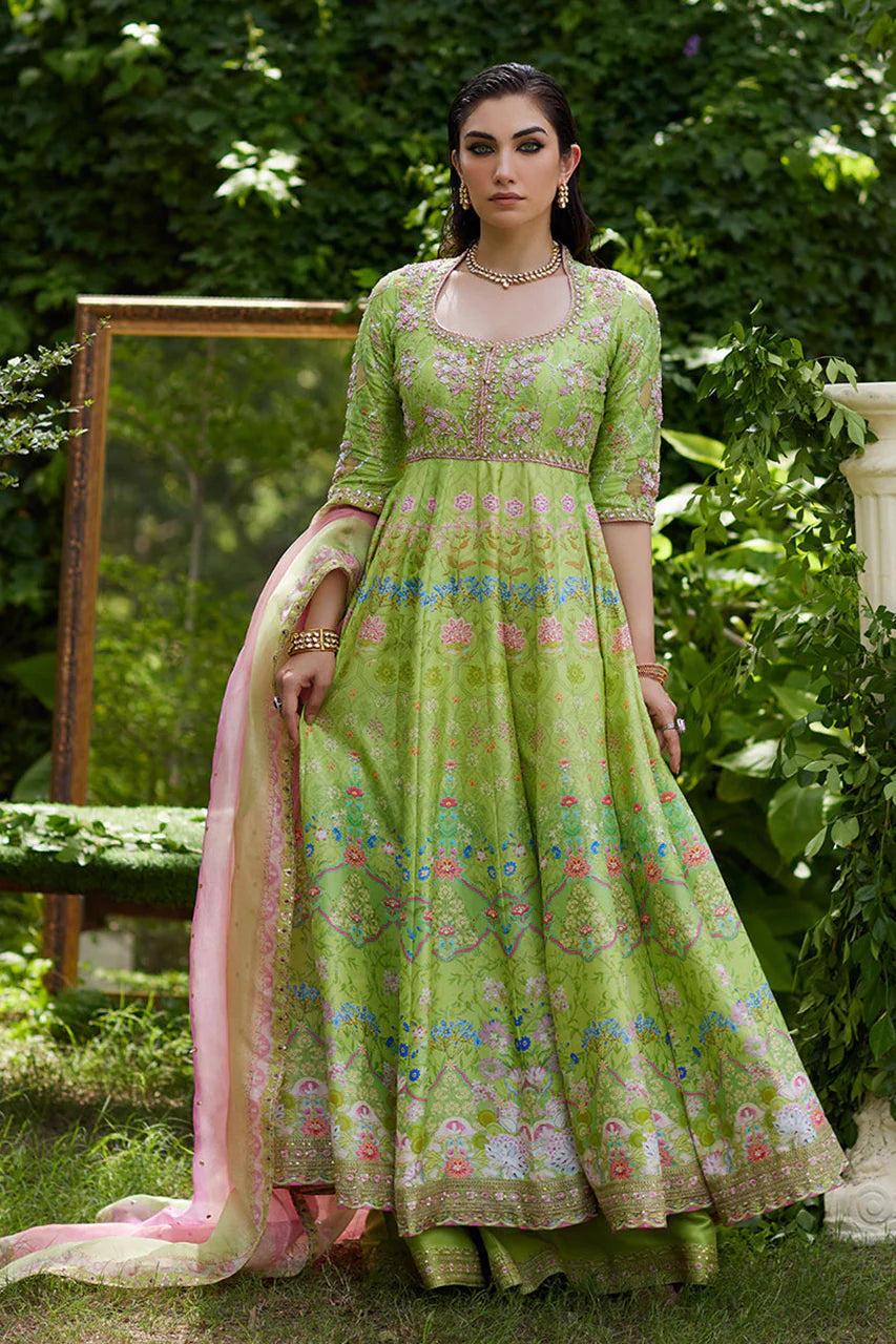 A dreamy printed organza dupatta adorned with sequins completes your outfit.