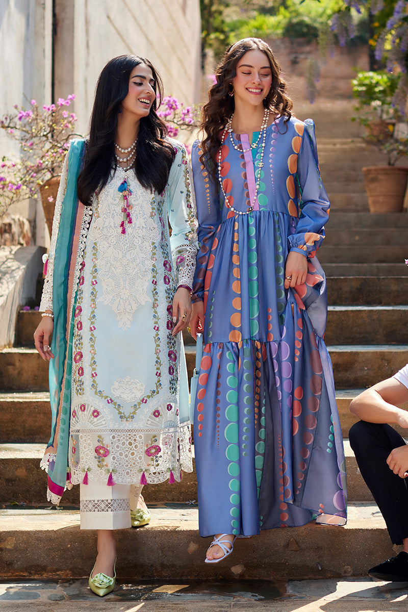 Embrace the enchantment of Lucca Lure, where every stitch is a testament to timeless beauty and allure. The delicately embroidered neckline, adorning both front and back, exudes elegance and sophistication, elevating your style effortlessly. Complete your look with the pure chiffon dupatta, adorned with a whimsical digital print that adds a touch of charm and grace.