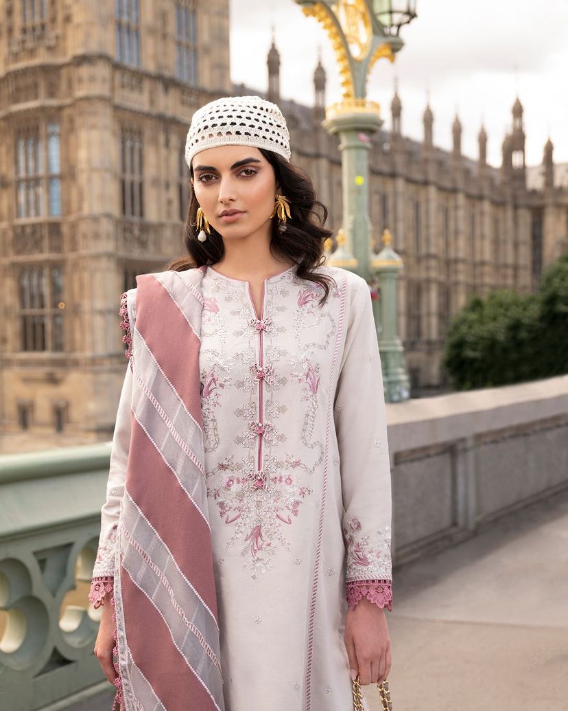 Radiate glamour with our "Marylebone" ensemble, a celebration of opulence and sophistication. The sequin embroidered karandi shirt steals the spotlight, shimmering with every movement, promising an evening filled with elegance and grace. Paired with meticulously embroidered trousers and a chatta patti shawl, the outfit achieves a perfect balance of flair and finesse.