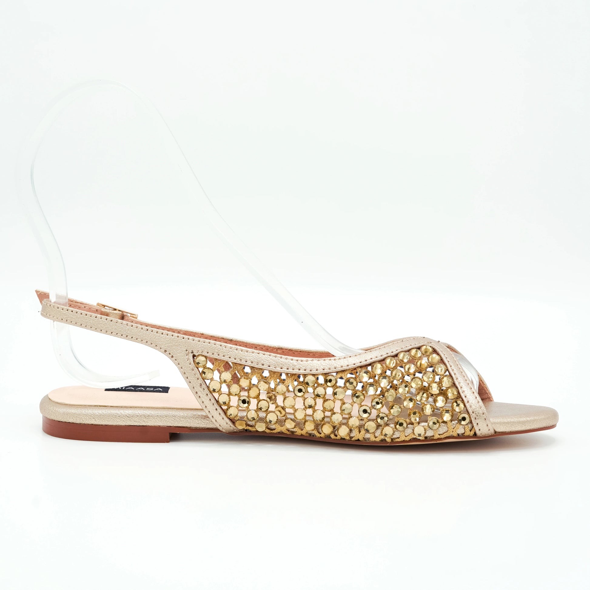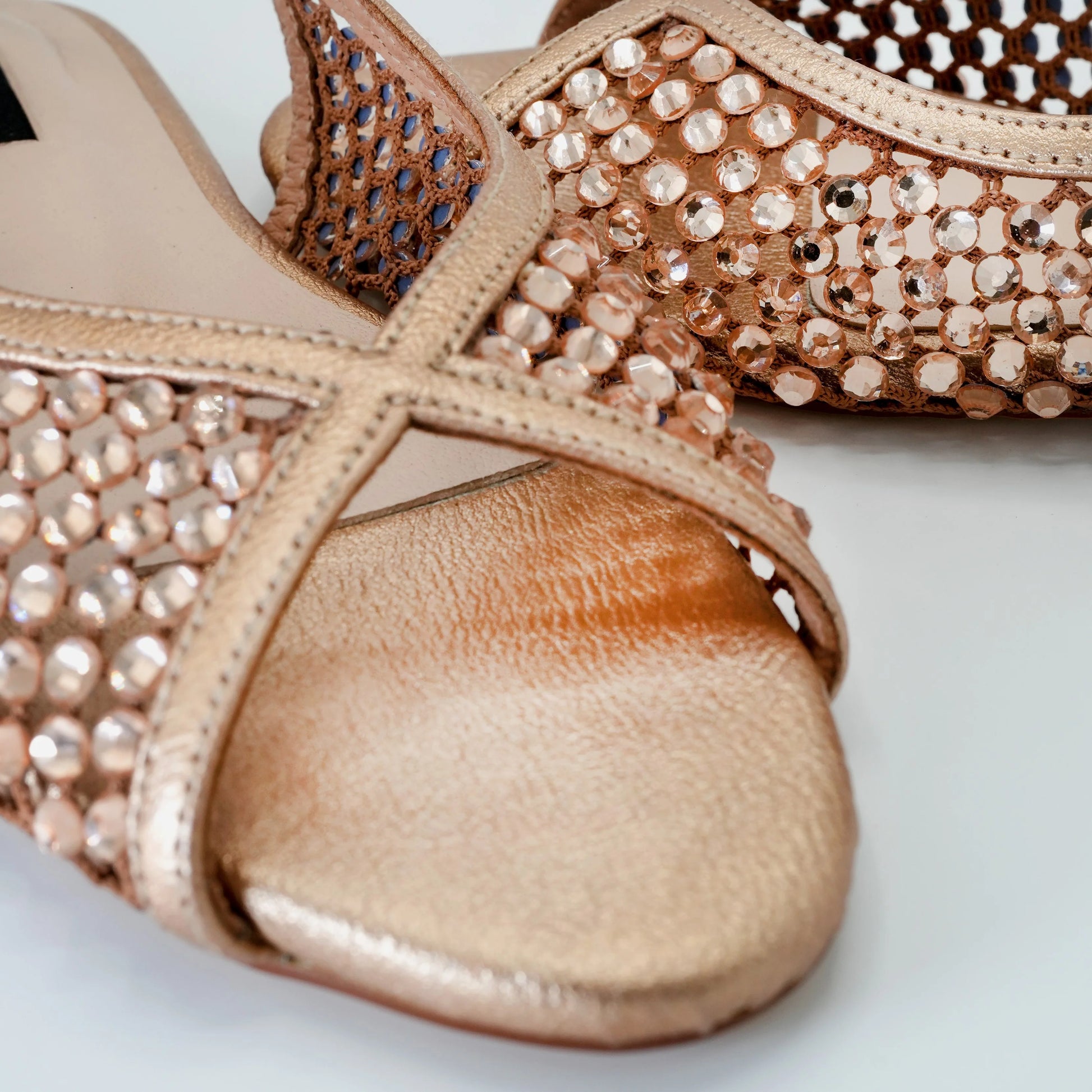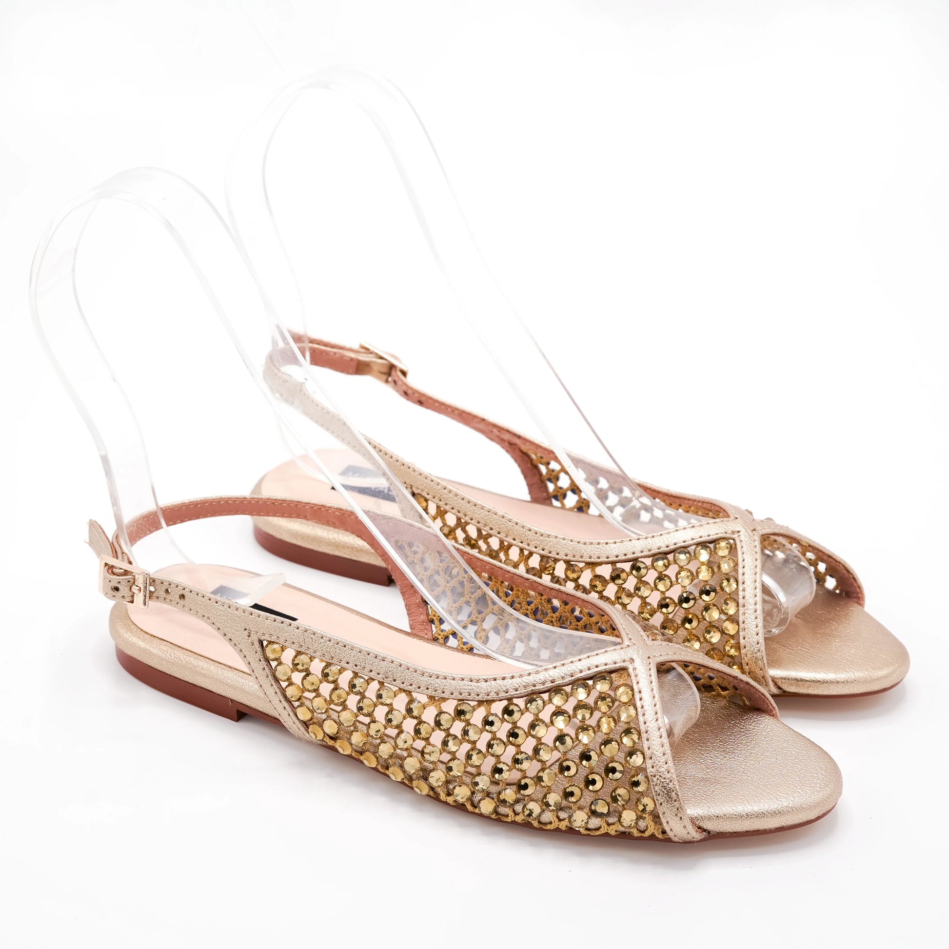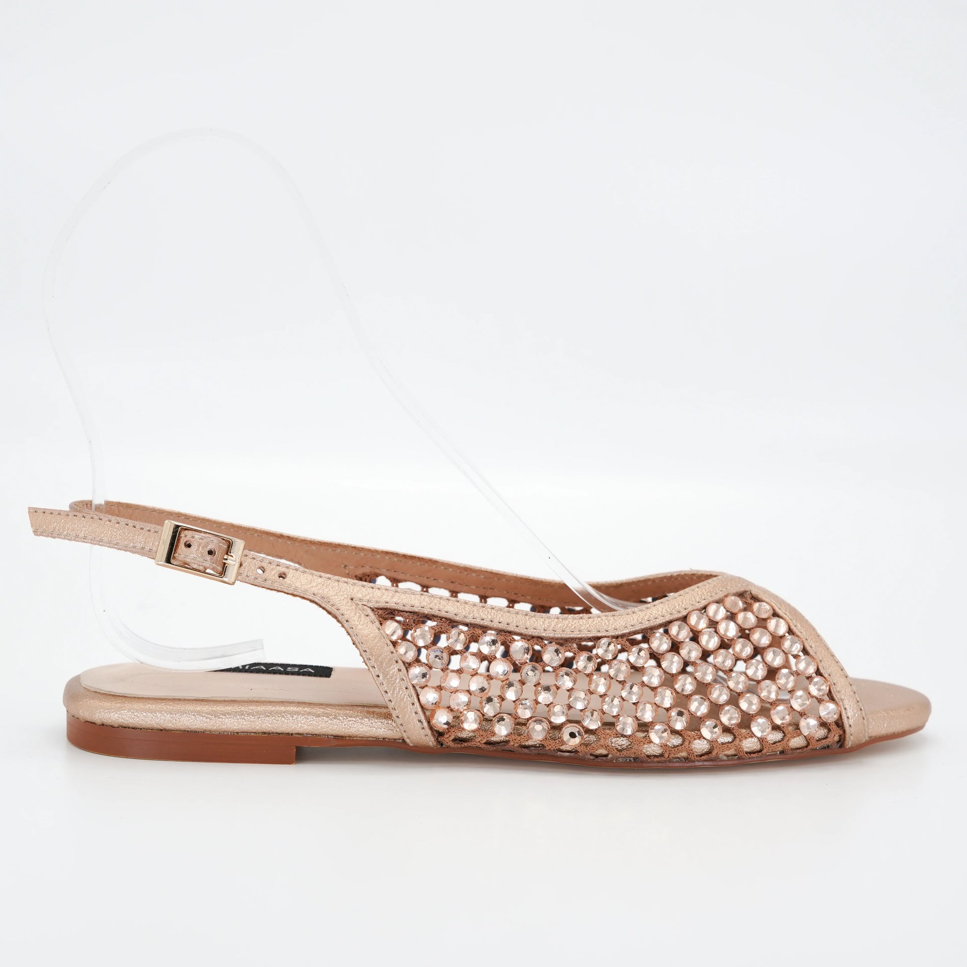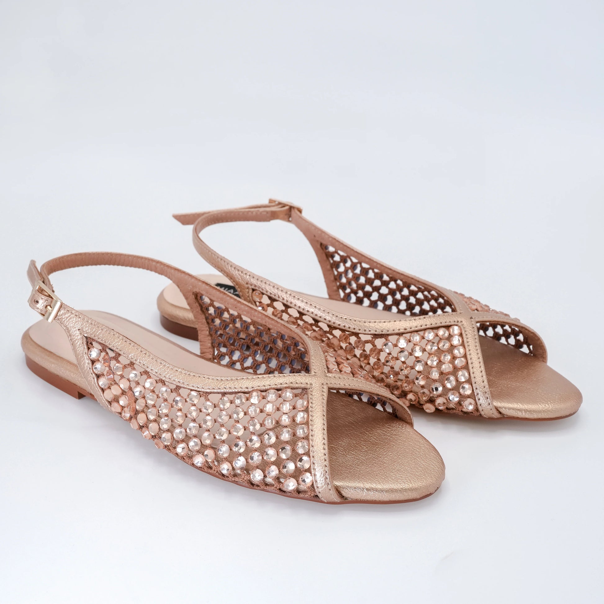Designed with a flattering peep-toe silhouette, these mesh flats are adorned with intricate crystal detailing that catches the light with every step. Whether you're dressing up for a special occasion or adding a touch of glam to your daily look, these versatile flats offer both style and ease.