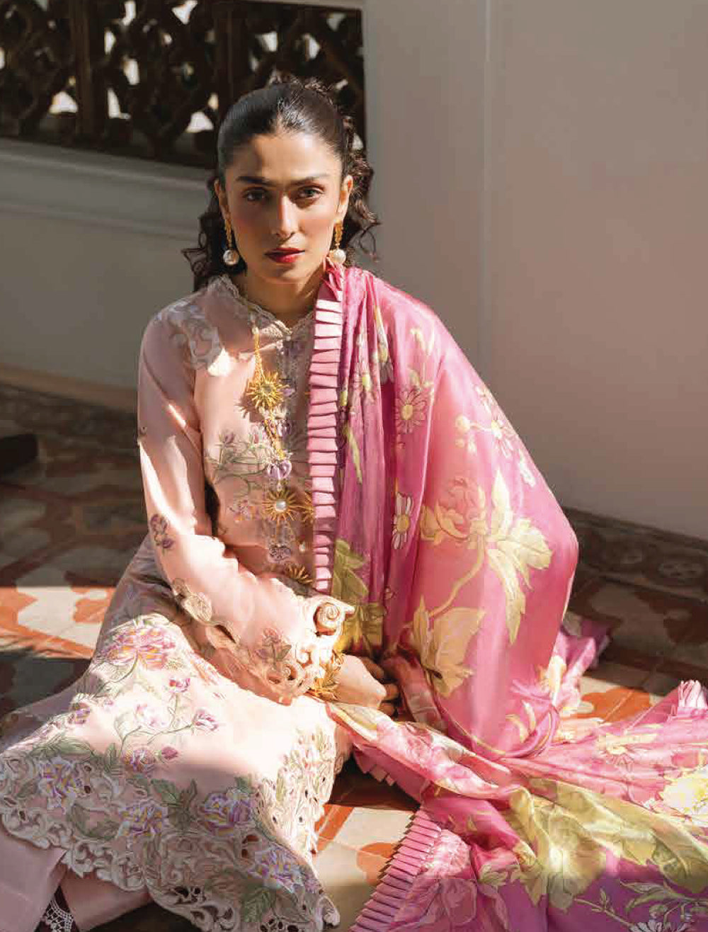 • Chikan embroidered lawn front