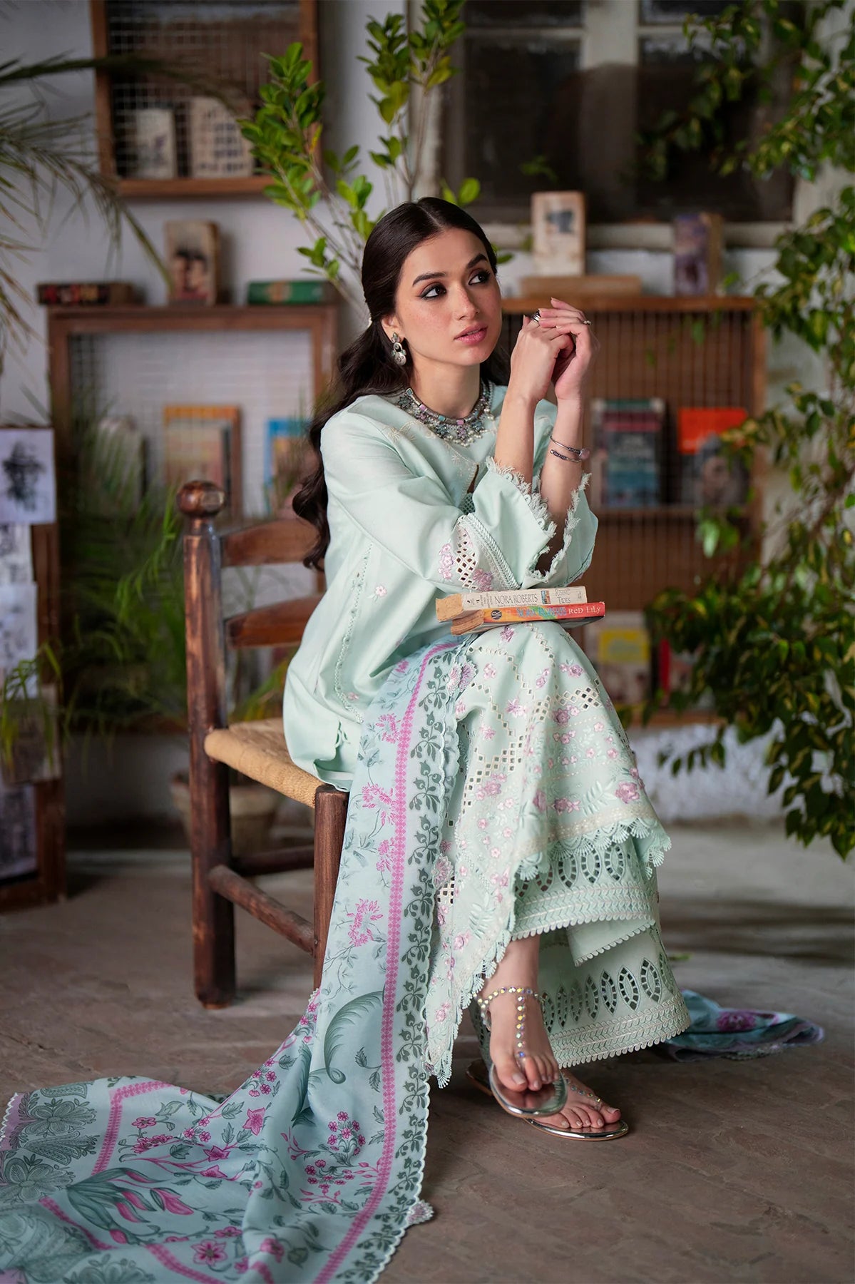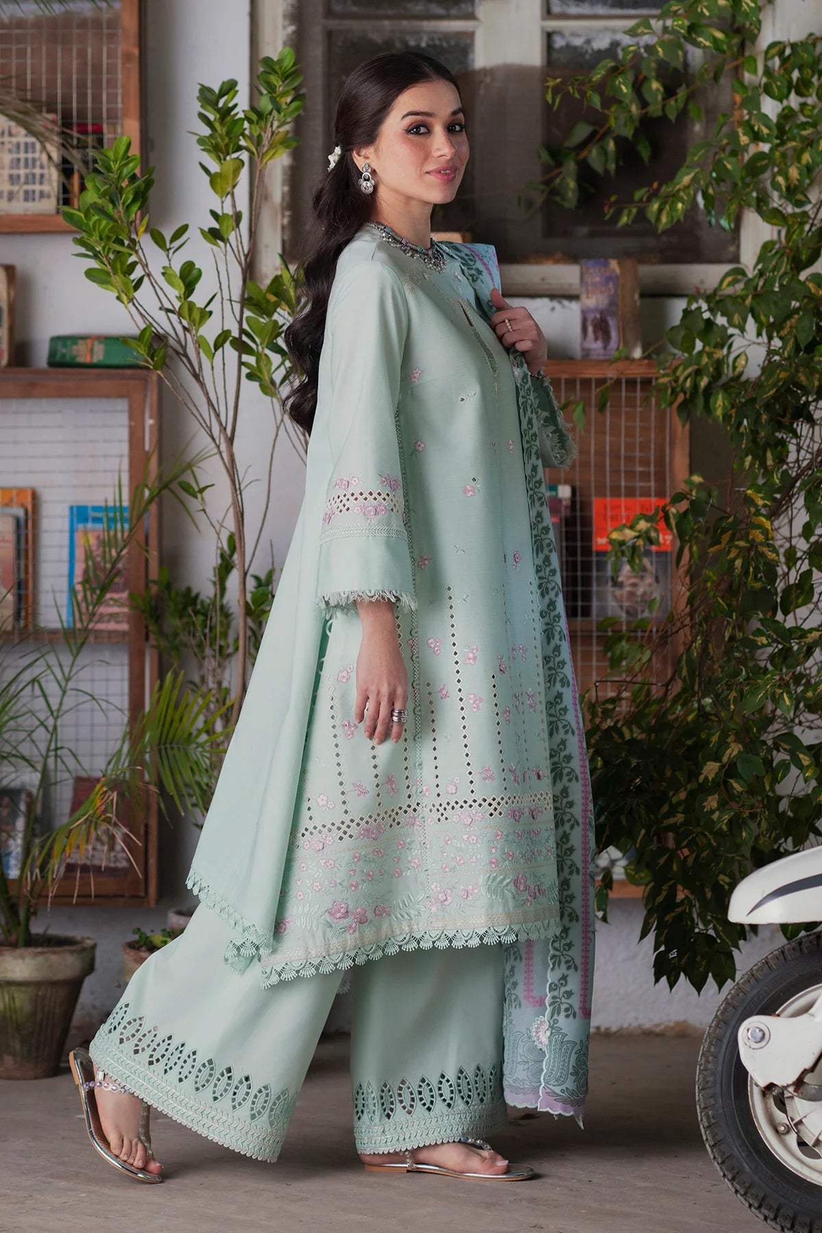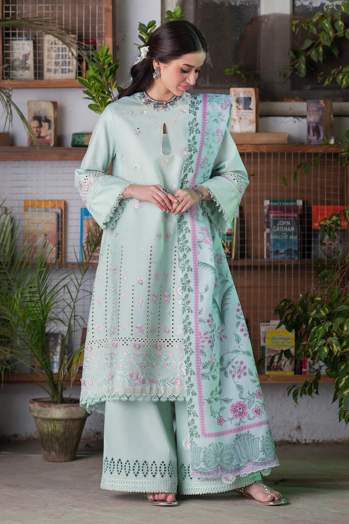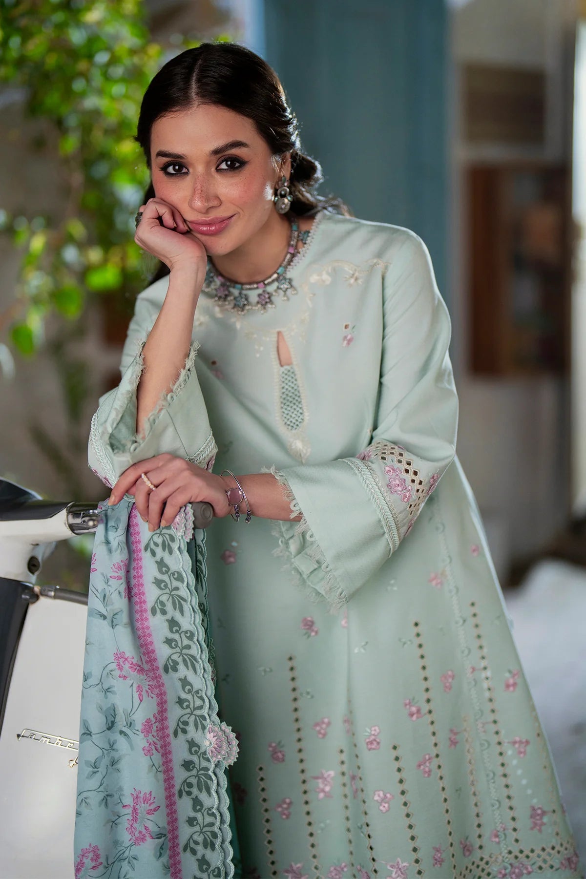 A dreamy pastel peach kurta adorned with delicate embroidery and intricate cutwork lace on the sleeves. Paired with a soft green dupatta featuring dainty floral embroidery and lace edging, this ensemble beautifully blends sophistication with a feminine charm.