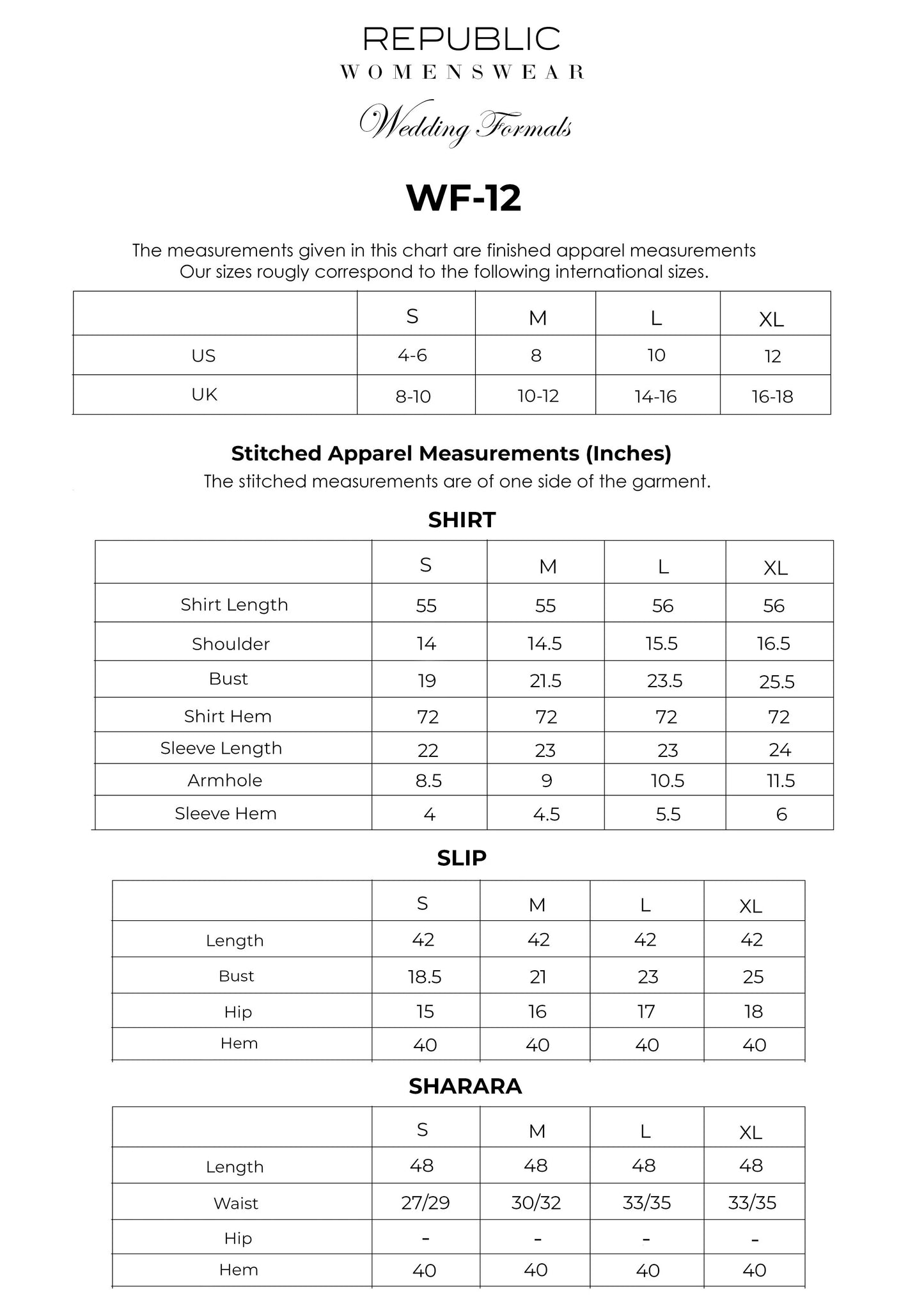 'Ornella, in a fresh lime hue, is a sartorial ode to graceful elegance. Its inverted V-neckline elegantly showcases the sweetheart lining, complemented by a silver lace trim that leads to an artfully embroidered front opening. Sequined embellishments dance along the organza and satin borders, enveloping the silhouette in a luxurious scalloped lace hem. This gown’s color palette is a deliberate dance of contrast and complement, finished with a four-sided pearl-adorned dupatta, marrying classic design with contemporary charm.