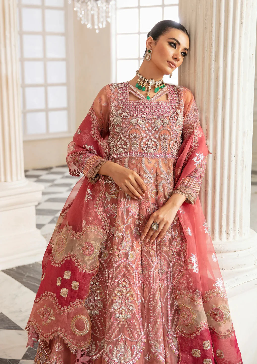 Dazzle in this exquisite pink maxi formal dress, the most luxurious ensemble of the collection, featuring the epitome of richness and magnificence. Every inch is adorned with amazing embroideries and carefully crafted hand embellishments, making it a masterpiece of design. The ensemble is elevated further by an Embroidered & Foil Printed Organza Patch Work Dupatta, adding an ethereal touch to your look.