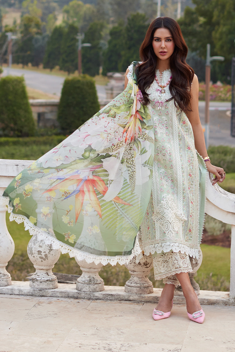 Ravenna Romance, is crafted with exquisite precision, this ensemble boasts delicate embroidery adorning both the front and back panels, adding a touch of timeless elegance to your look. The intricately embroidered neckline on both the front and back further elevates the ensemble, exuding sophistication and charm.
