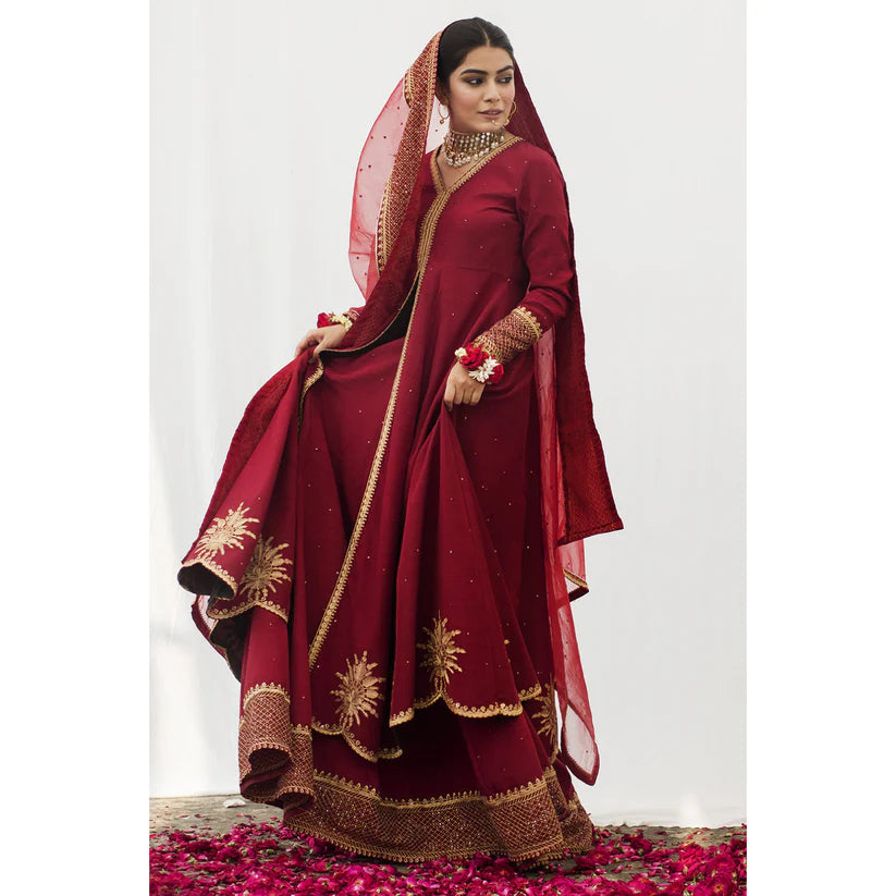 RED OPEN CUT ANARKALI OUTFIT | DYOT