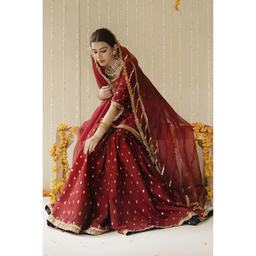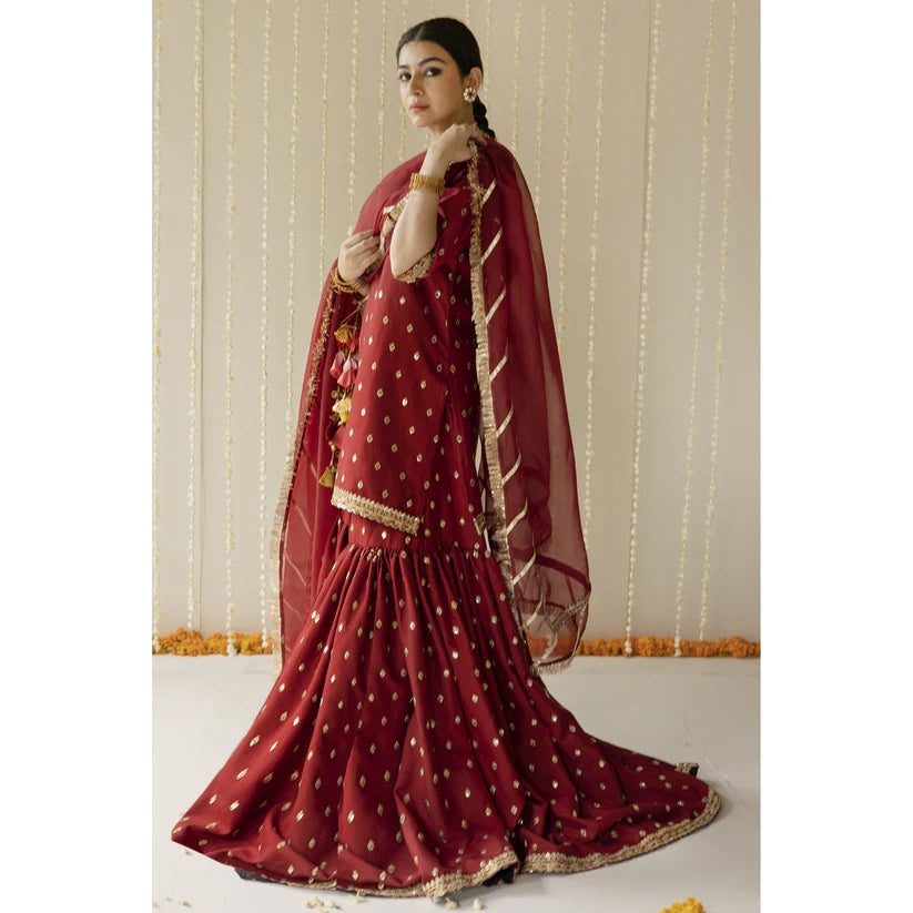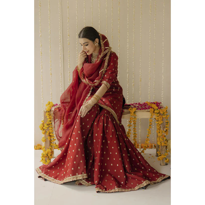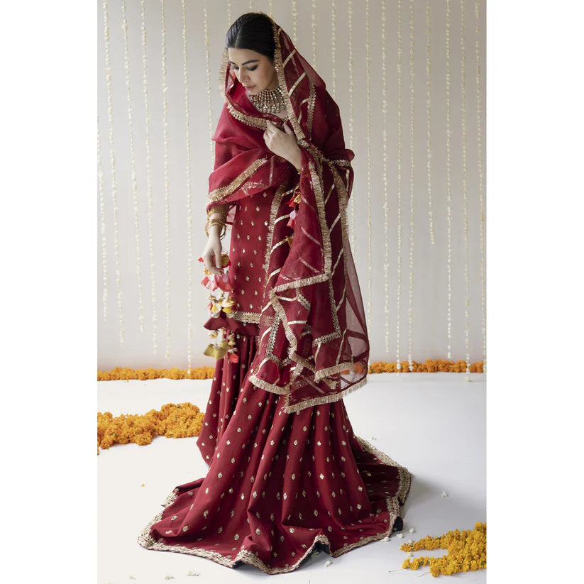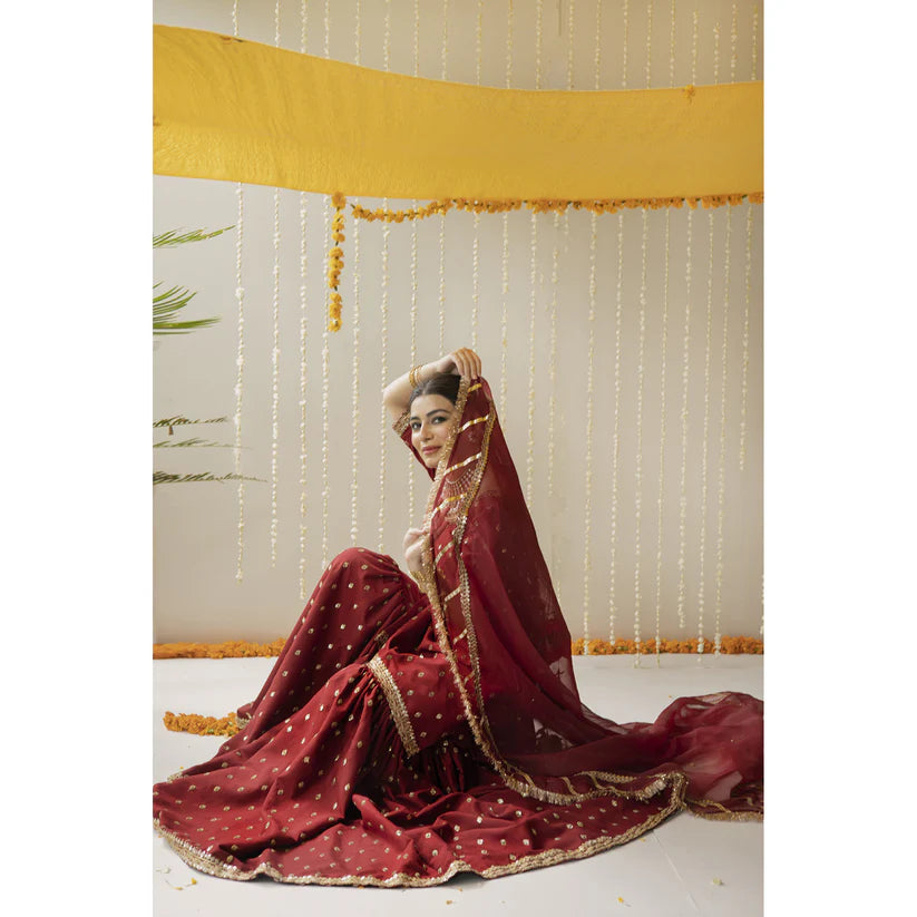 MATERIAL: Fused Bamber Silk. 2-PC (Straight kameez & Gharara)