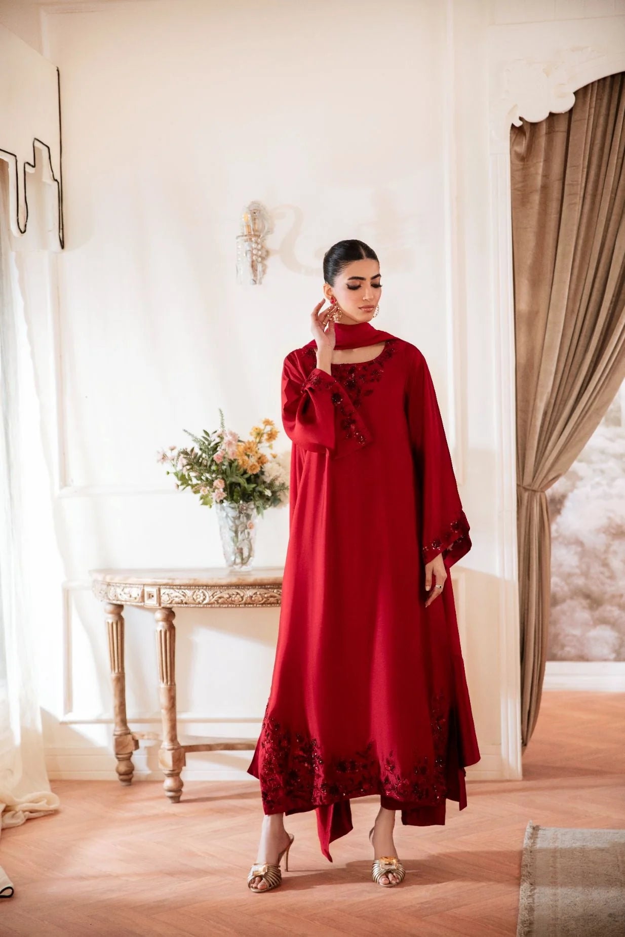 Hand embroidered base with embellishment of crystals, Katdana and sequins in monotones of Base color.