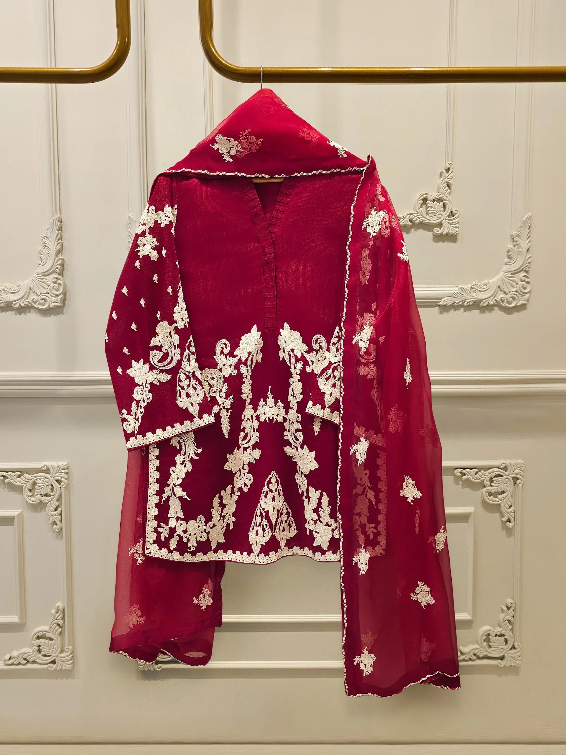 Introducing our elegant embroidered cotton net shirt with pants a perfect choice for those who appreciate intricate detailing and graceful style. Crafted from high-quality cotton net fabric, this shirt offers a lightweight and luxurious feel, allowing you to feel comfortable and chic throughout the day. The set comes with a matching pant which enhances the overall look and adds a touch of finesse to your outfit.