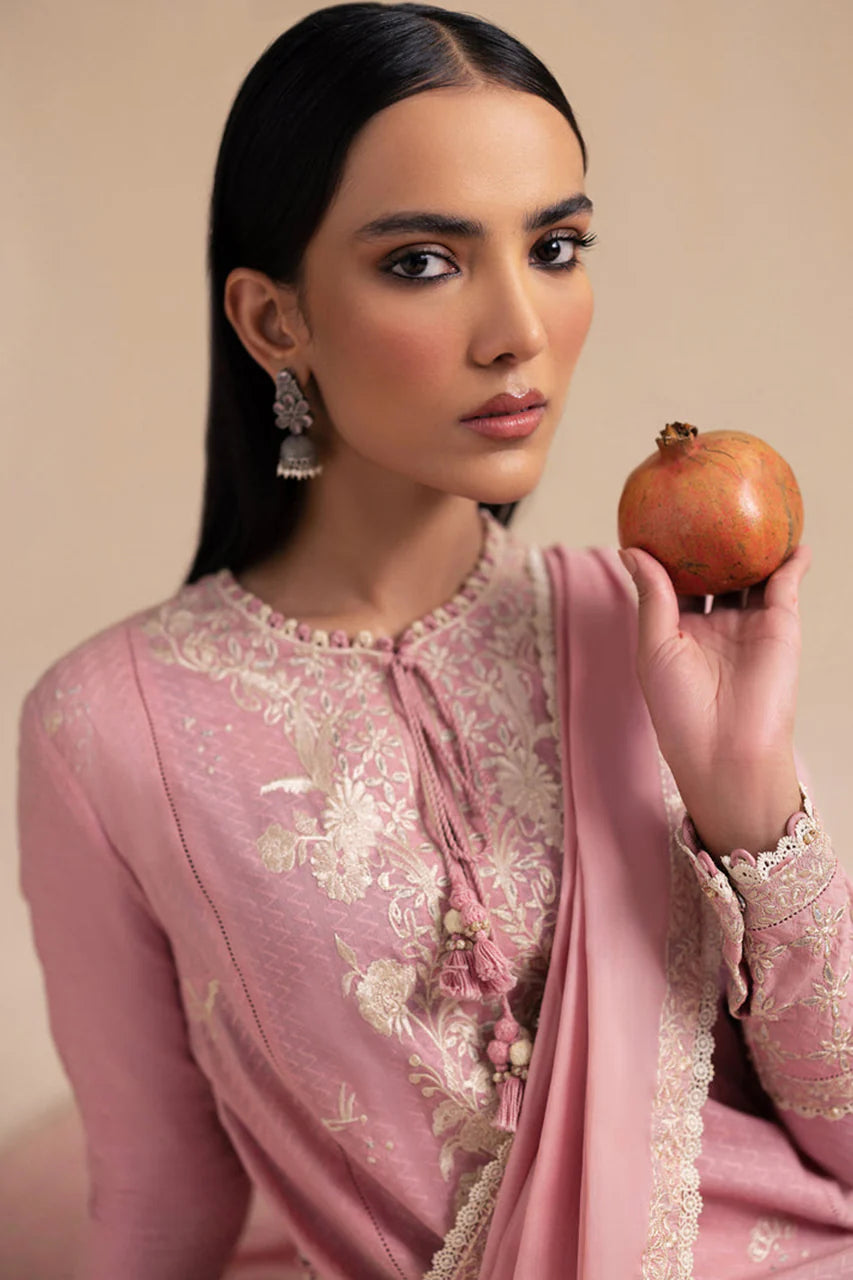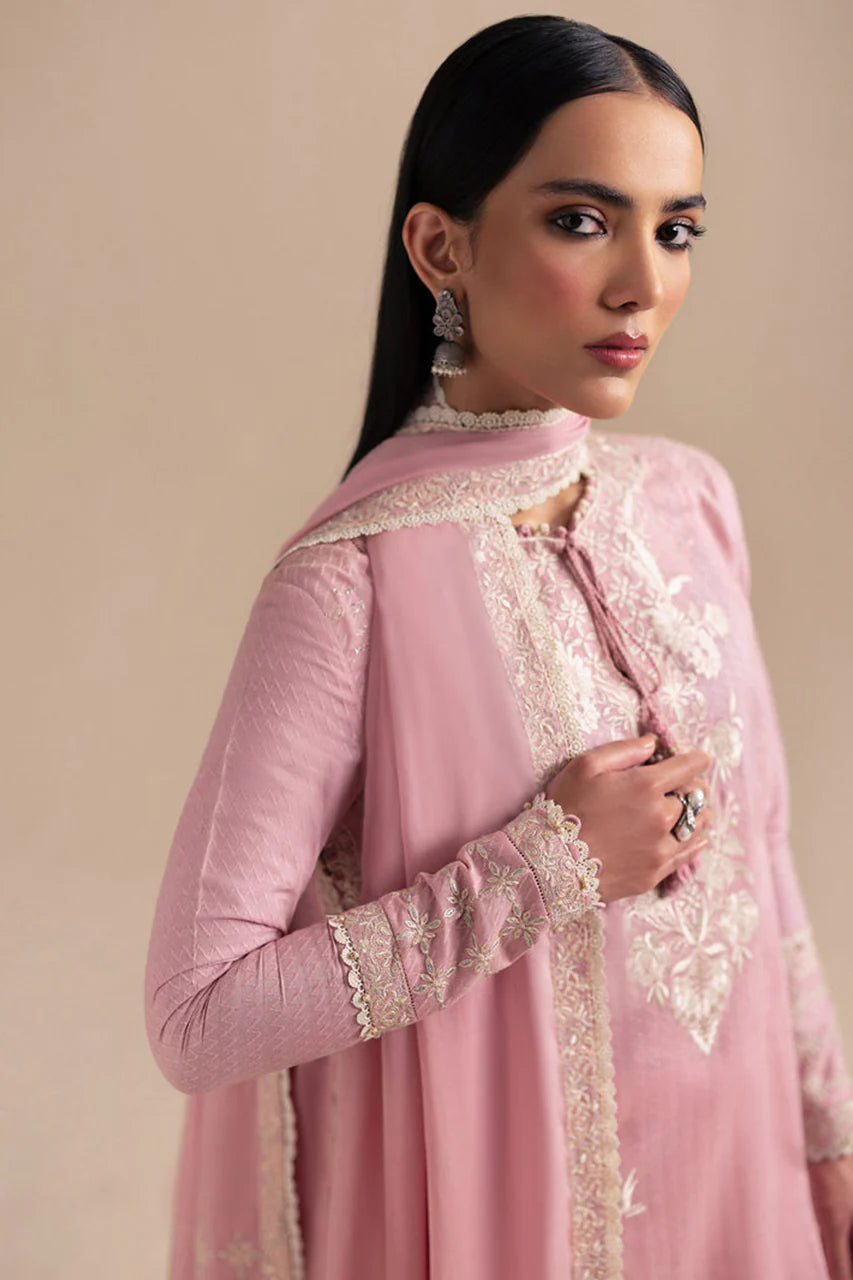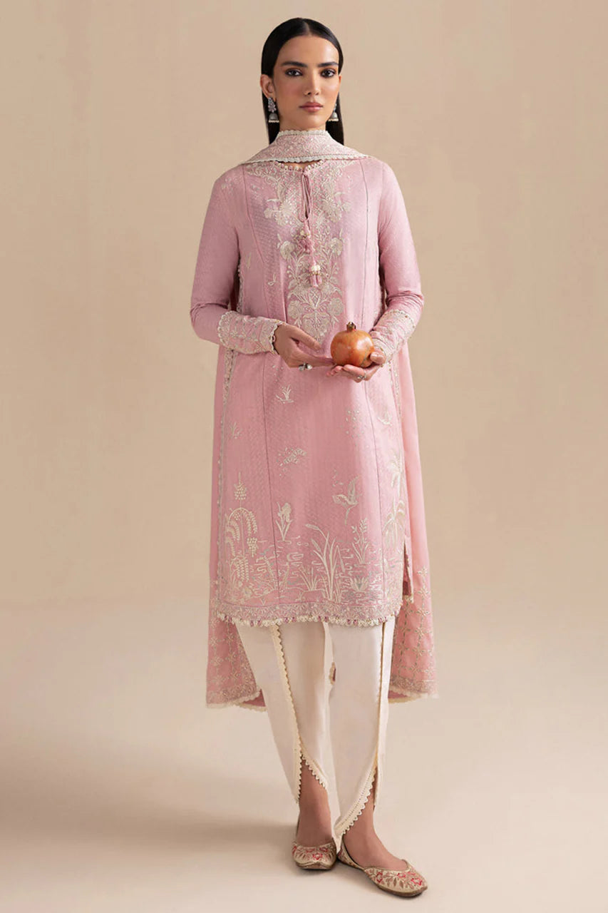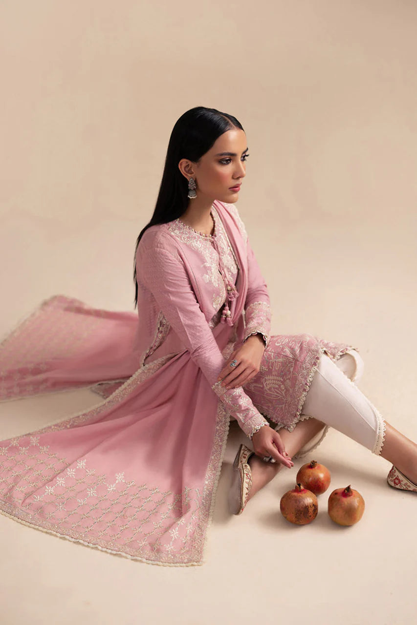 Introducing the ‘Sourati’ 2-piece embroidered ensemble, a stunning embodiment of elegance in a soft powder pink hue. This refined design is intricately adorned with traditional embroidery that captures the essence of autumn’s tranquil beauty. The tailored shirt is meticulously crafted to provide a flattering silhouette, while the dupatta, with its elaborate and densely embroidered border, brings a luxurious touch to the ensemble. Every delicate thread of ‘Sourati’ reflects the calmness of the season, evoking the softness of fading daylight and the serene stillness of autumn’s quiet moments. This ensemble is a harmonious blend of timeless sophistication and seasonal charm, perfect for those who appreciate understated elegance
