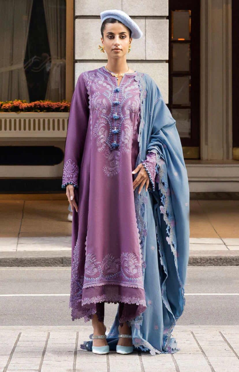 Step into the serene beauty of the “Thames Twilight” ensemble, a poetic tribute to understated elegance. The embroidered linen shirt, paired with chikan embroidered linen sleeves, exudes a timeless charm that captures the essence of twilight’s grace. Accompanied by a linen embroidered shawl adorned with crochet lace finishing’s, this ensemble is a masterpiece of delicate details and sophistication.