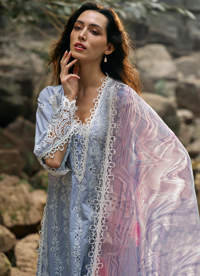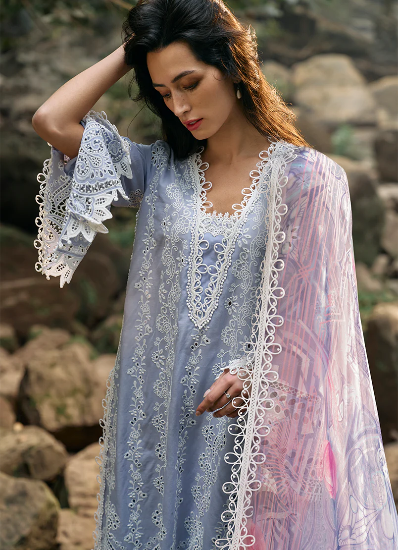 Wyzah, an amalgamation of gorgeous cutwork and Schiffli embroidery on shirt and sleeves making Wyza an exquisite piece of art. Paired with a beautiful printed chiffon dupatta.