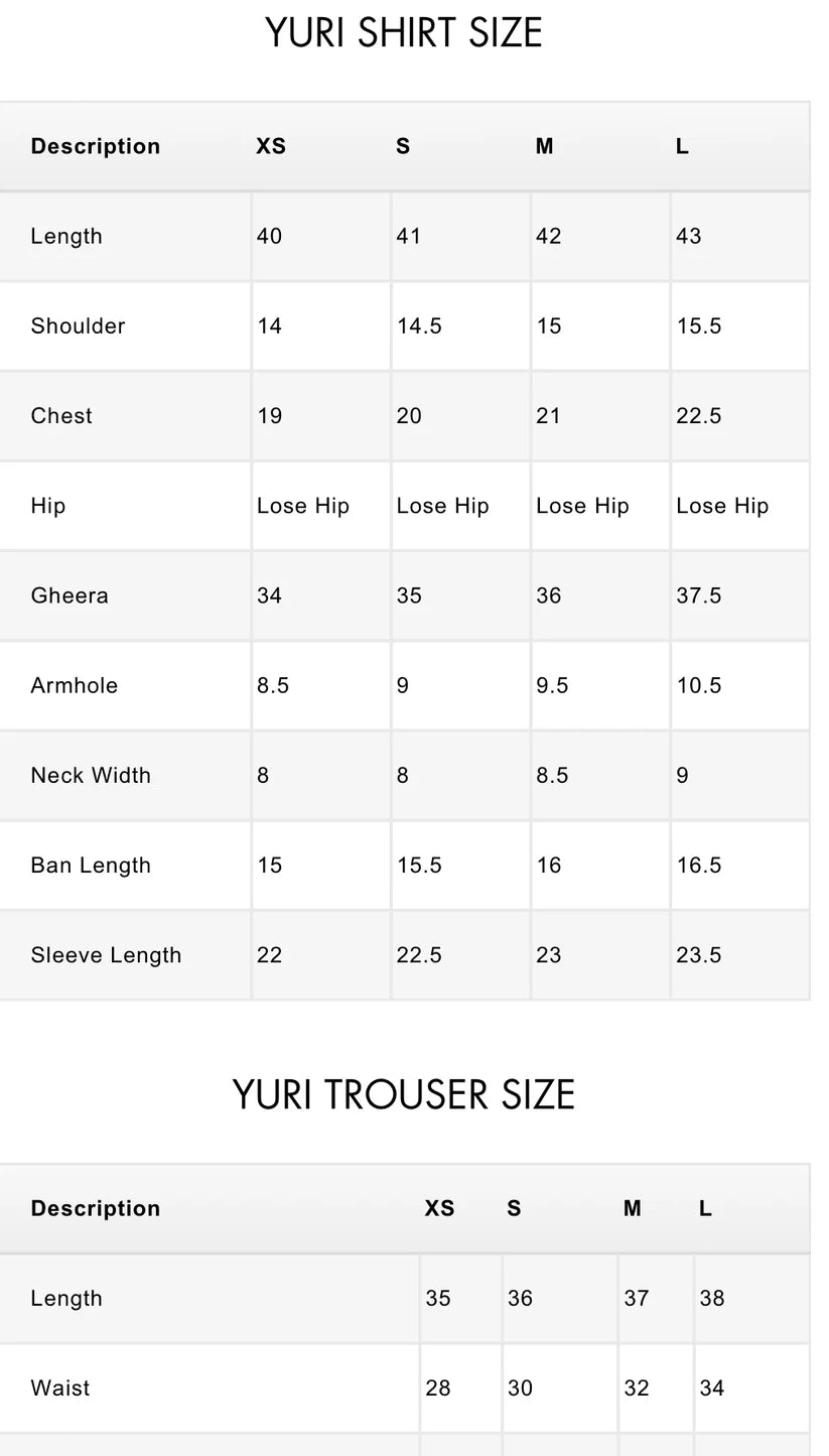 Package Includes: 2pcs Shirt & Trouser, separate scarf