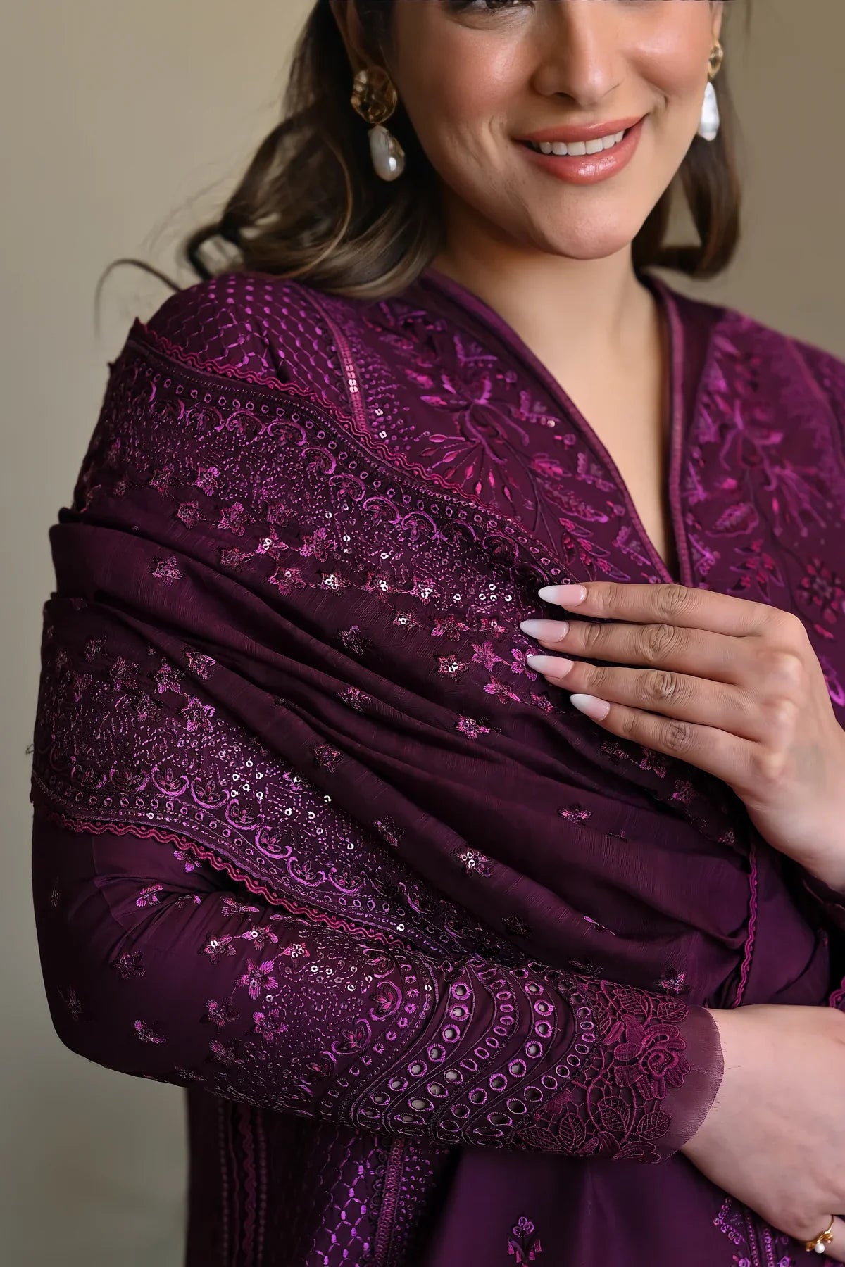 Sold outZAIB MAROON LUXURY EMBROIDERED LAWN SET 2025 (NEL-25607)