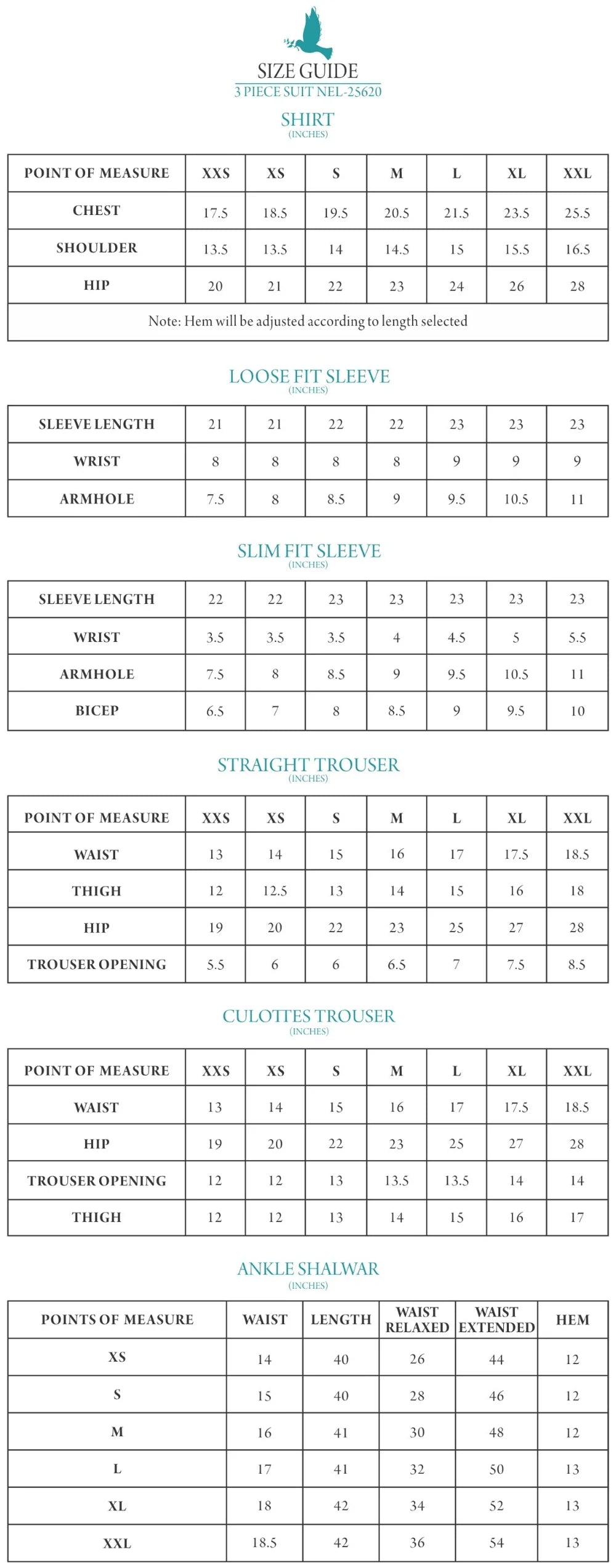 Daaman | 21 - 22" | 23.5 - 23.5" | 23.5 - 24" | 25 - 26" | 26.5 - 27" |