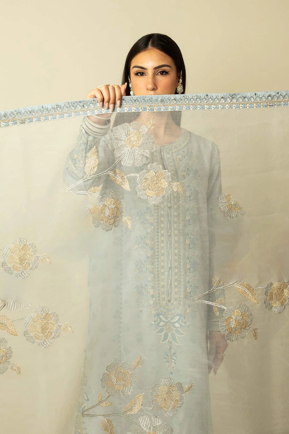 Embroidered organza dupatta 2.6 Yard
